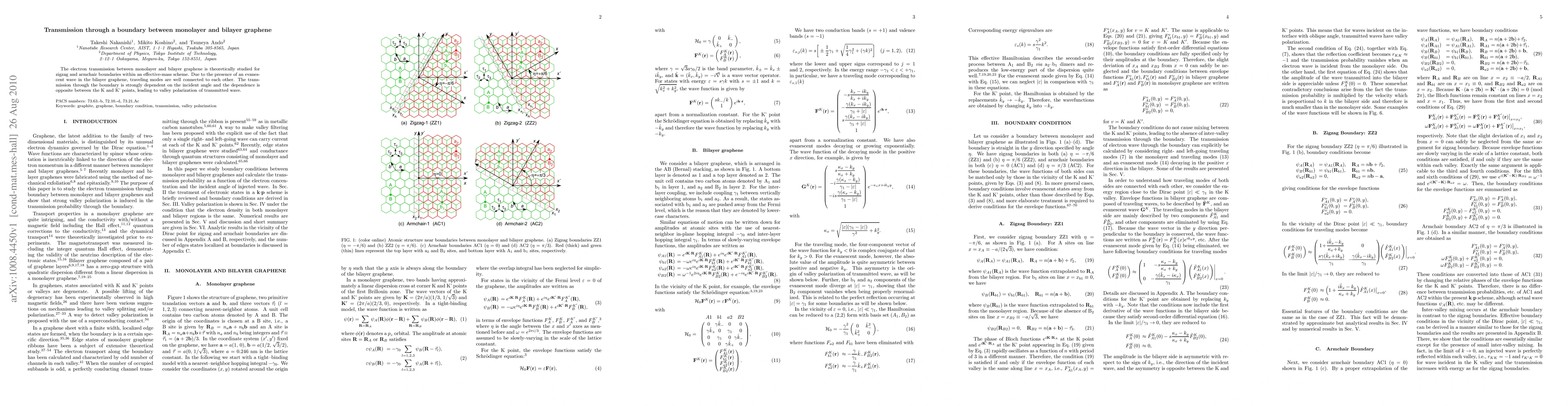 The electron transmission between monolayer and bilayer graphene is theoretically studied for zigzag and armchair boundaries within an effective-mass scheme. Due to the presence of an evanescent wave in the bilayer graphene, traveling modes are well connected to each other. The transmission through the boundary is strongly dependent on the incident angle and the dependence is opposite between the K and K' points, leading to valley polarization of transmitted wave.