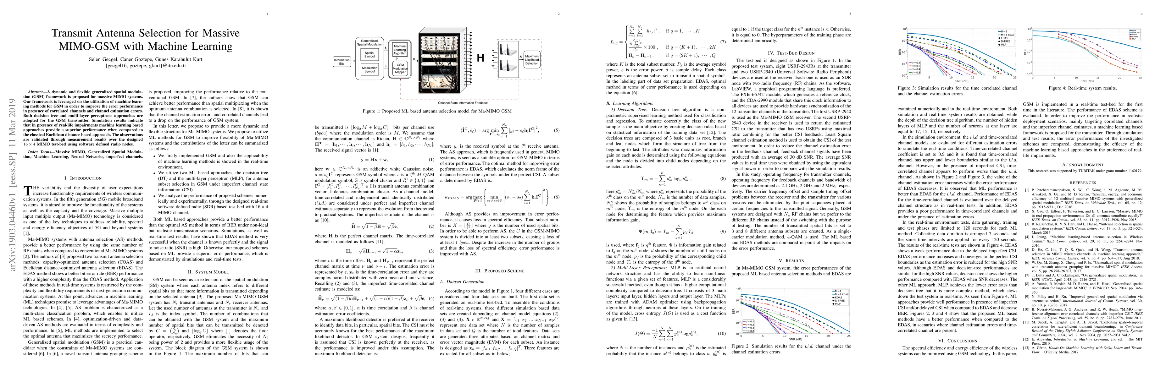 This research introduces a machine learning-enhanced generalized spatial modulation (GSM) framework for massive MIMO systems, improving error performance under correlated channels and estimation errors. Simulation and measurement results over a 16x4 MIMO test-bed show superior performance of machine learning approaches compared to traditional methods.