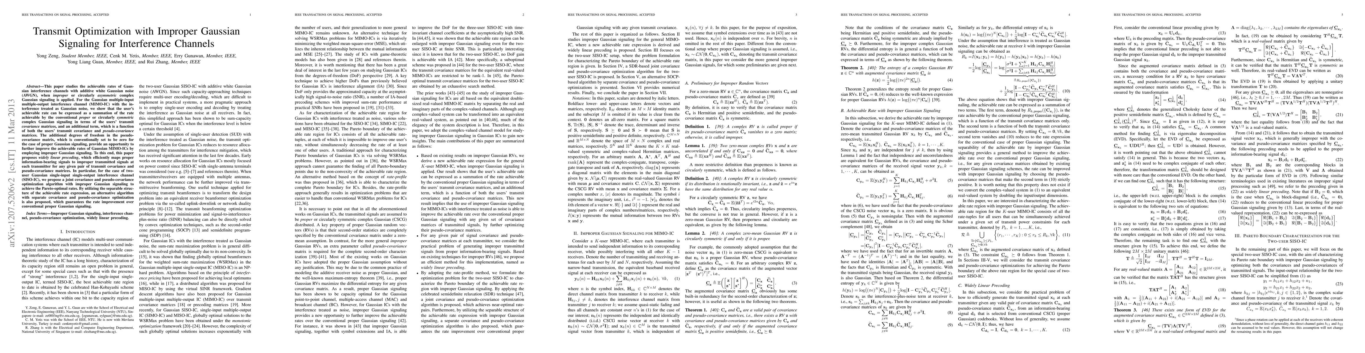 Researchers developed a method to improve rates in interference channels using improper Gaussian signaling, increasing achievable data transfer speeds. By optimizing transmit covariance and pseudo-covariance matrices, they achieved Pareto-optimal rates, outperforming conventional proper Gaussian signaling.