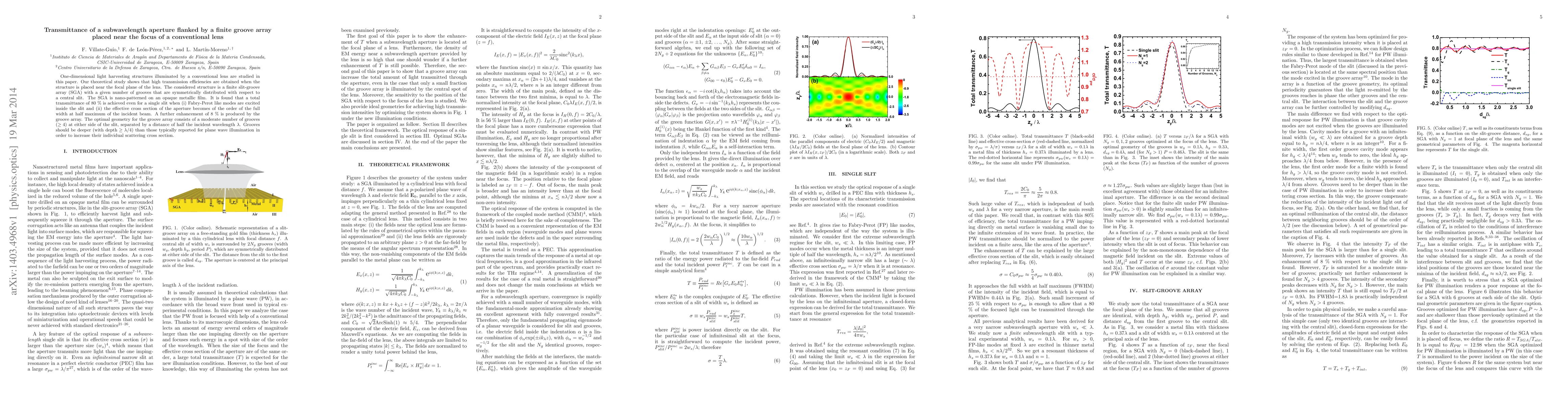 Researchers found that placing a subwavelength aperture flanked by a finite groove array near the focus of a conventional lens can achieve high transmission efficiencies, up to 80% with just one slit.