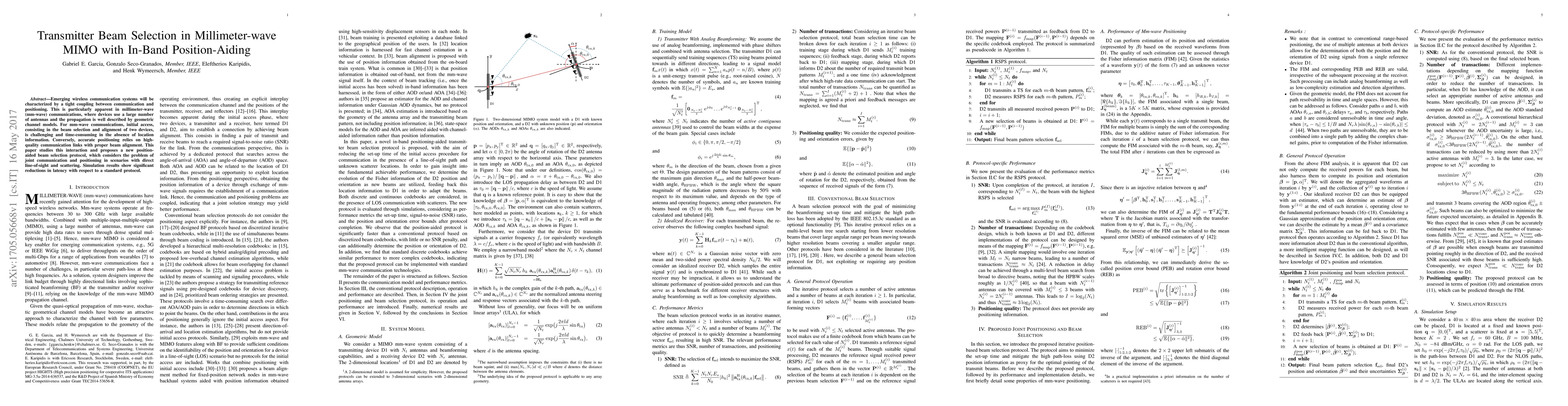 A new beam selection protocol is proposed for millimeter-wave MIMO communications with in-band positioning, reducing latency by up to 50% compared to traditional protocols.