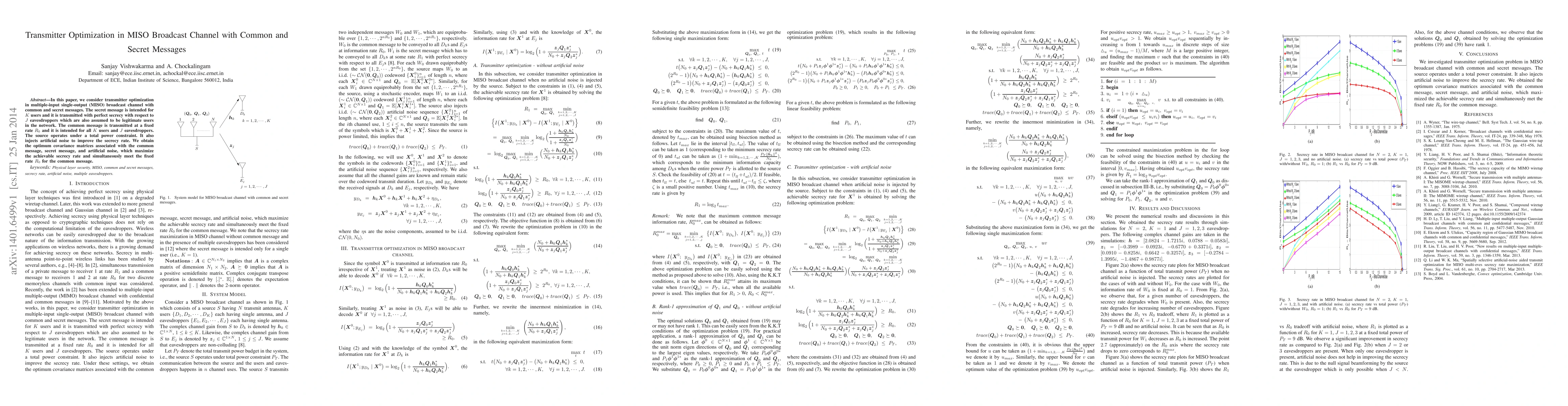 This paper optimizes transmitter settings for a multiple-input single-output broadcast channel with both common and secret messages, ensuring secure transmission of secret information while meeting rate constraints.