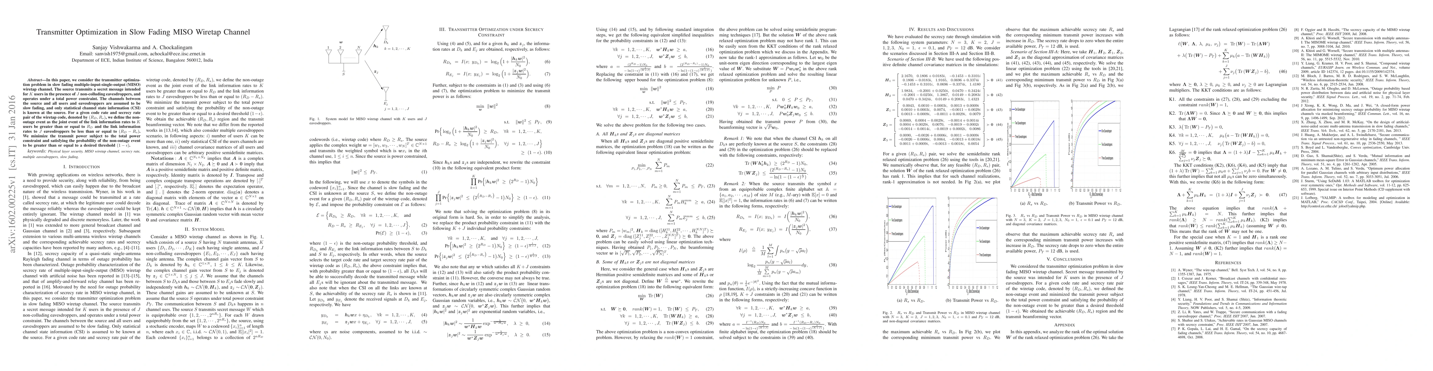 This paper optimizes the transmitter in a slow fading MISO wiretap channel, aiming to minimize power while ensuring a desired probability of non-outage for a given code rate and secrecy rate pair, with statistical channel state information available at the source.