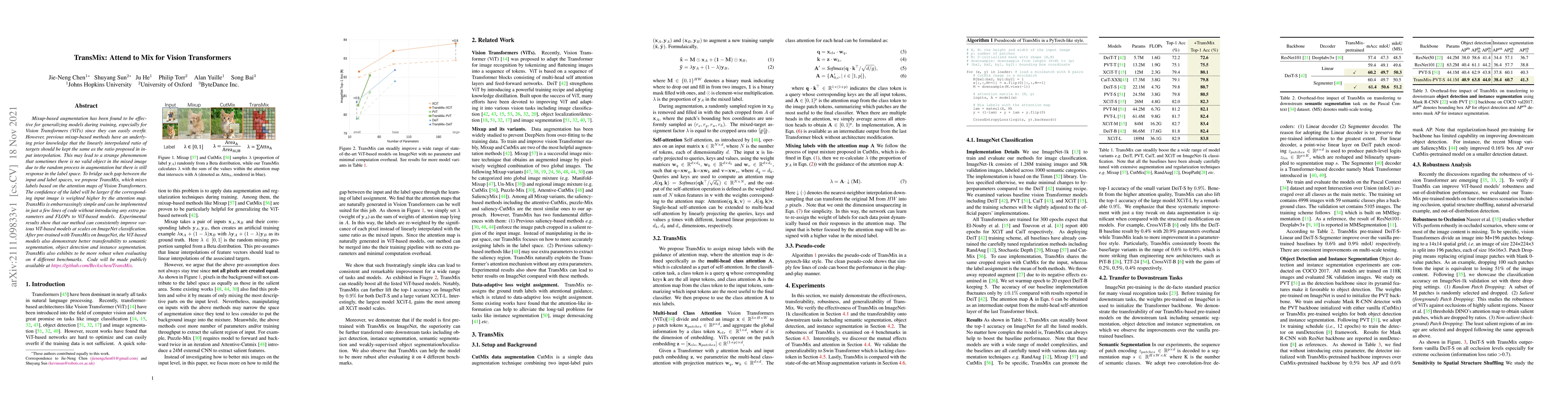 Researchers propose TransMix, a method to improve Vision Transformers by mixing labels based on attention maps, leading to better performance in ImageNet classification and transferability to other tasks.