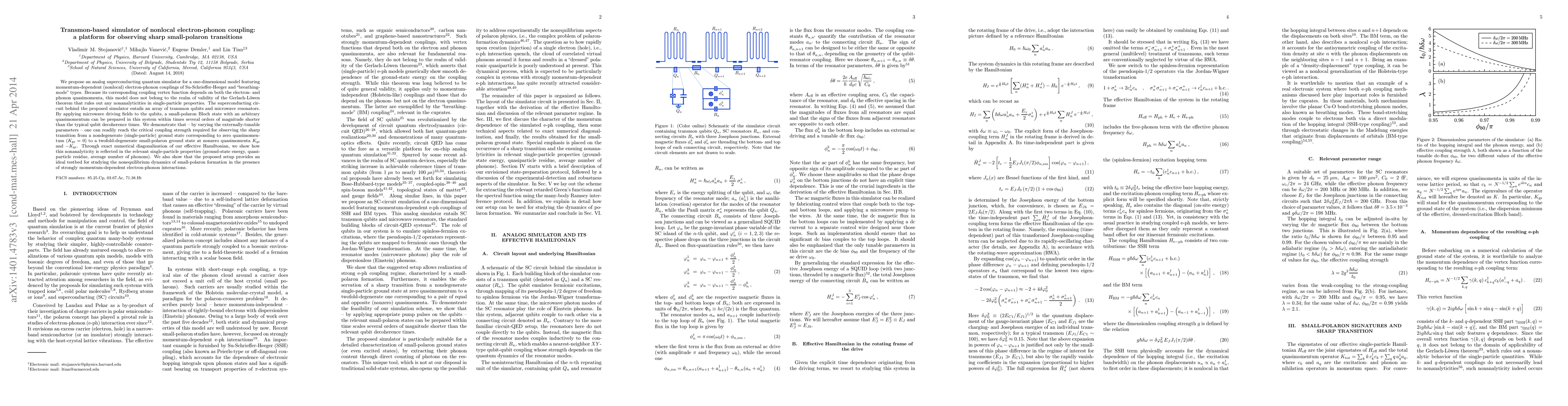 This paper proposes an analog superconducting quantum simulator using transmon qubits to model nonlocal electron-phonon coupling in a one-dimensional system. The simulator can prepare small-polaron Bloch states and observe the transition from a single-particle ground state to a degenerate small-polaron ground state, demonstrating the system's potential for studying quantum dynamics of polaron formation.