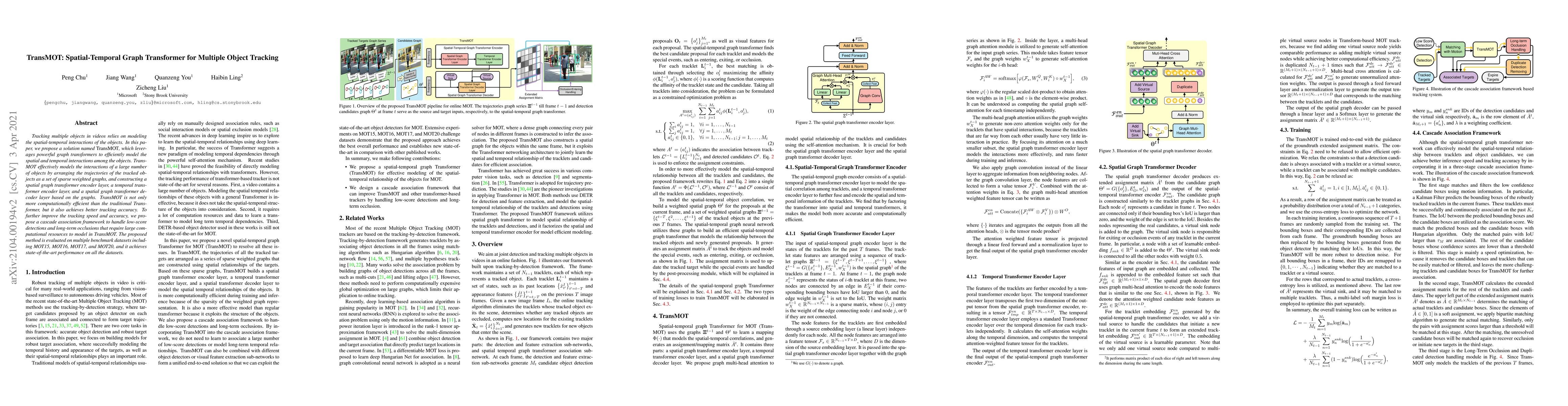 TransMOT employs spatial-temporal graph transformers to model interactions for multiple object tracking, achieving higher accuracy and efficiency compared to traditional Transformers. The method includes a cascade association framework to enhance performance under occlusions, and it outperforms existing methods on several benchmark datasets.