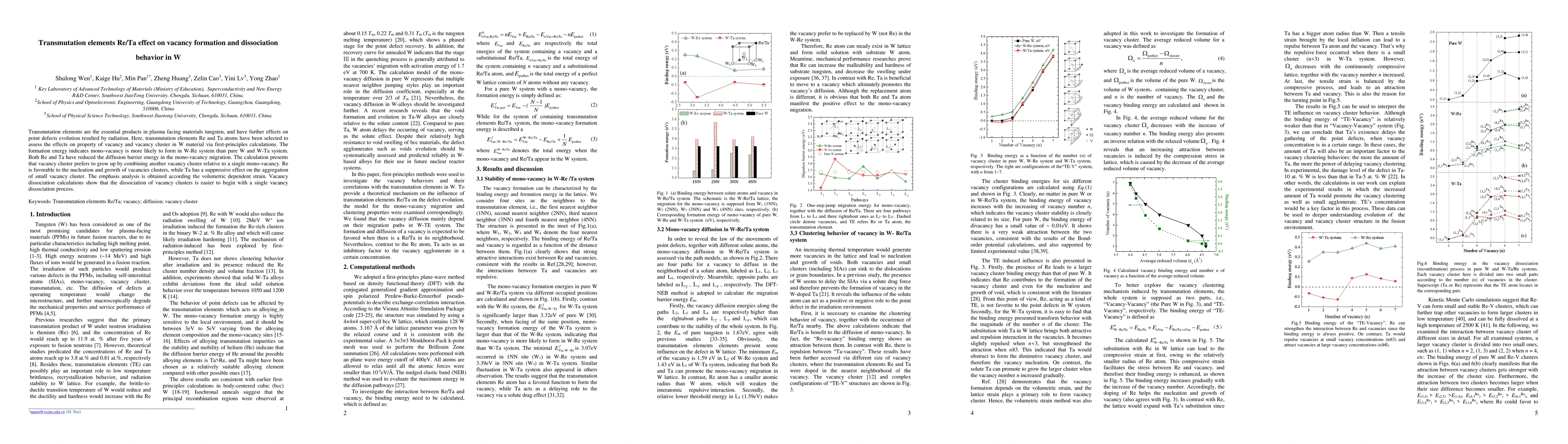 This paper investigates the impact of transmutation elements Re and Ta on vacancy formation and behavior in tungsten using first-principles calculations. Re promotes vacancy cluster nucleation and growth, while Ta suppresses the aggregation of small vacancy clusters, indicating different effects on defect evolution in tungsten due to radiation.