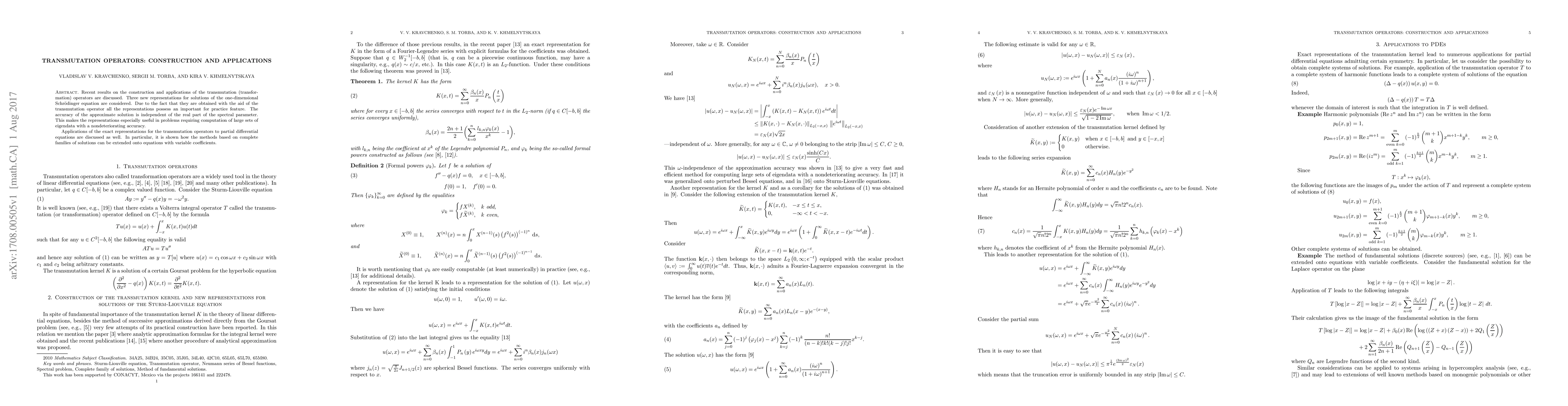 This paper explores new constructions and applications of transmutation operators, providing three novel representations for solutions to the one-dimensional Schrödinger equation. These representations maintain accuracy regardless of the spectral parameter's real part, making them highly effective for computing large eigendata sets. The paper also extends these methods to partial differential equations with variable coefficients.
