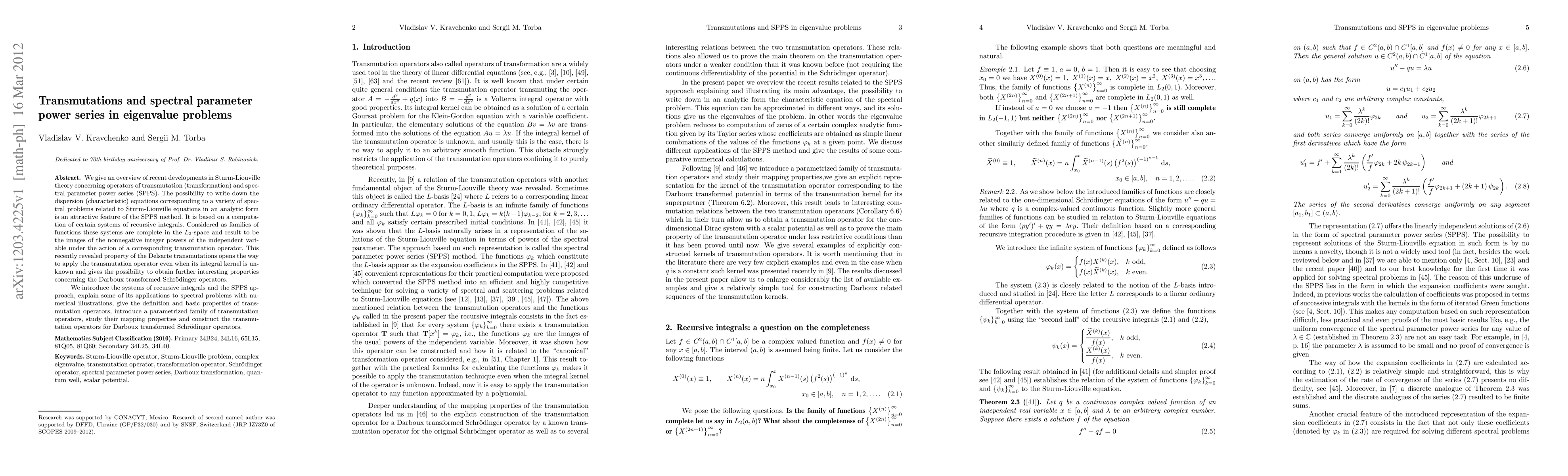 This paper reviews recent advances in Sturm-Liouville theory, focusing on transmutation operators and spectral parameter power series (SPPS). The SPPS method allows for analytic dispersion equations for various spectral problems, employing recursive integrals and transmutation operators to derive complete families of functions in $L_{2}$-space.