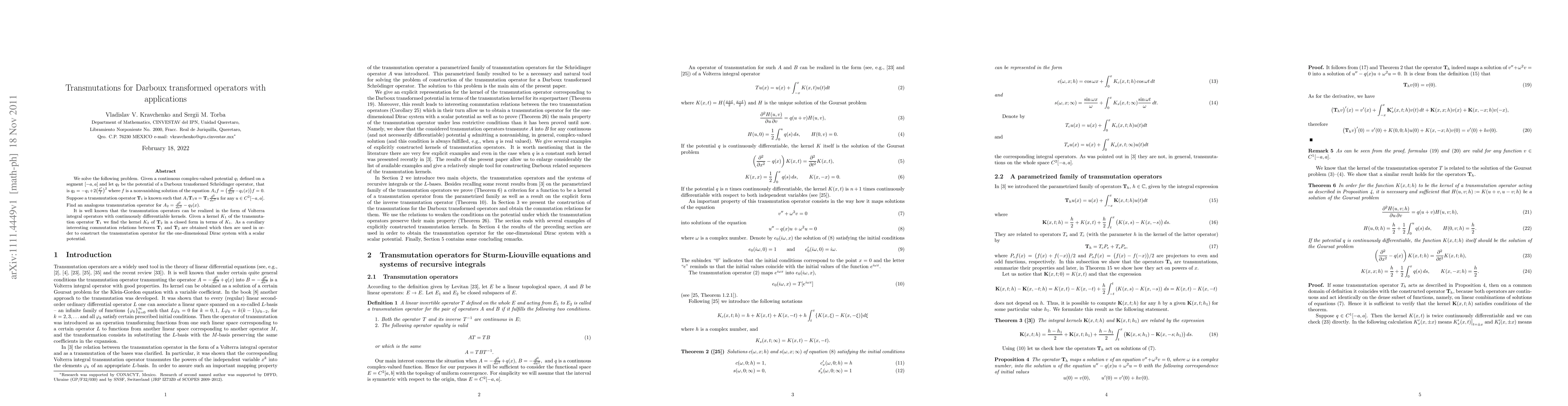 We solve the following problem. Given a continuous complex-valued potential q_1 defined on a segment [-a,a] and let q_2 be the potential of a Darboux transformed Schr\"odinger operator. Suppose a transmutation operator T_1 for the potential q_1 is known such that the corresponding Schr\"odinger operator is transmuted into the operator of second derivative. Find an analogous transmutation operator T_2 for the potential q_2. It is well known that the transmutation operators can be realized in the form of Volterra integral operators with continuously differentiable kernels. Given a kernel K_1 of the transmutation operator T_1 we find the kernel K_2 of T_2 in a closed form in terms of K_1. As a corollary interesting commutation relations between T_1 and T_2 are obtained which then are used in order to construct the transmutation operator for the one-dimensional Dirac system with a scalar potential.