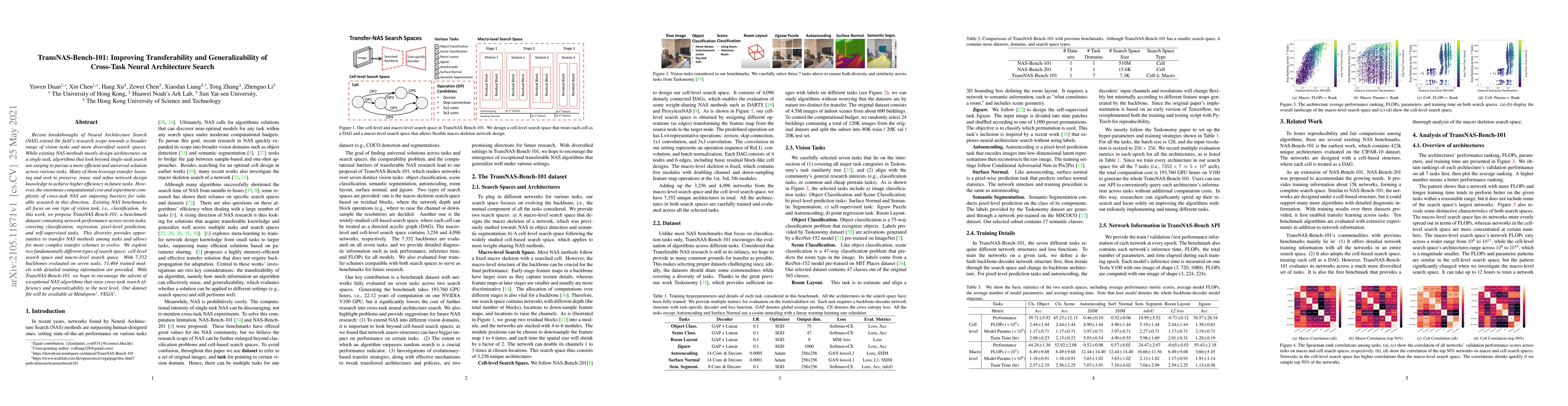 TransNAS-Bench-101 introduces a comprehensive benchmark dataset evaluating neural architecture search (NAS) across seven diverse vision tasks, aiming to enhance cross-task transferability and generalizability. The dataset includes 51,464 trained models and detailed training information, fostering the development of more efficient and universal NAS algorithms.