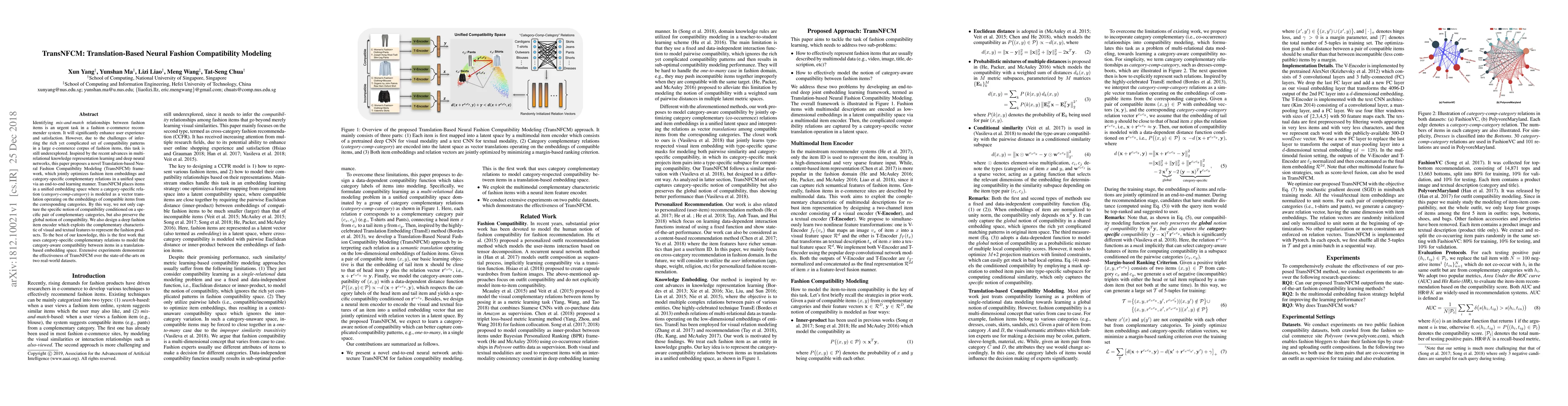 Identifying mix-and-match relationships between fashion items is an urgent task in a fashion e-commerce recommender system. It will significantly enhance user experience and satisfaction. However, due to the challenges of inferring the rich yet complicated set of compatibility patterns in a large e-commerce corpus of fashion items, this task is still underexplored. Inspired by the recent advances in multi-relational knowledge representation learning and deep neural networks, this paper proposes a novel Translation-based Neural Fashion Compatibility Modeling (TransNFCM) framework, which jointly optimizes fashion item embeddings and category-specific complementary relations in a unified space via an end-to-end learning manner. TransNFCM places items in a unified embedding space where a category-specific relation (category-comp-category) is modeled as a vector translation operating on the embeddings of compatible items from the corresponding categories. By this way, we not only capture the specific notion of compatibility conditioned on a specific pair of complementary categories, but also preserve the global notion of compatibility. We also design a deep fashion item encoder which exploits the complementary characteristic of visual and textual features to represent the fashion products. To the best of our knowledge, this is the first work that uses category-specific complementary relations to model the category-aware compatibility between items in a translation-based embedding space. Extensive experiments demonstrate the effectiveness of TransNFCM over the state-of-the-arts on two real-world datasets.