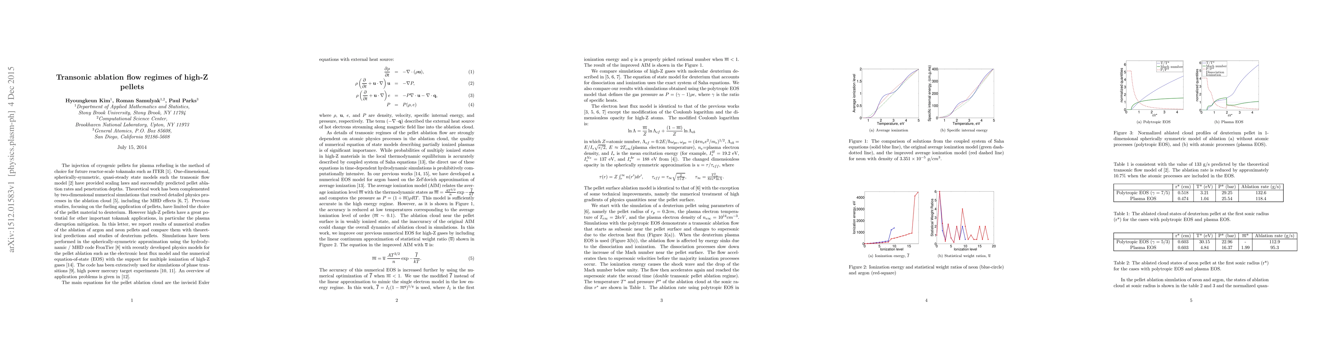 This paper presents numerical studies on the ablation of argon and neon pellets in tokamaks, highlighting the impact of atomic physics on the ablation process and comparing these findings with theoretical predictions and deuterium pellets. The results underscore the significance of atomic physics in determining ablation flow regimes.