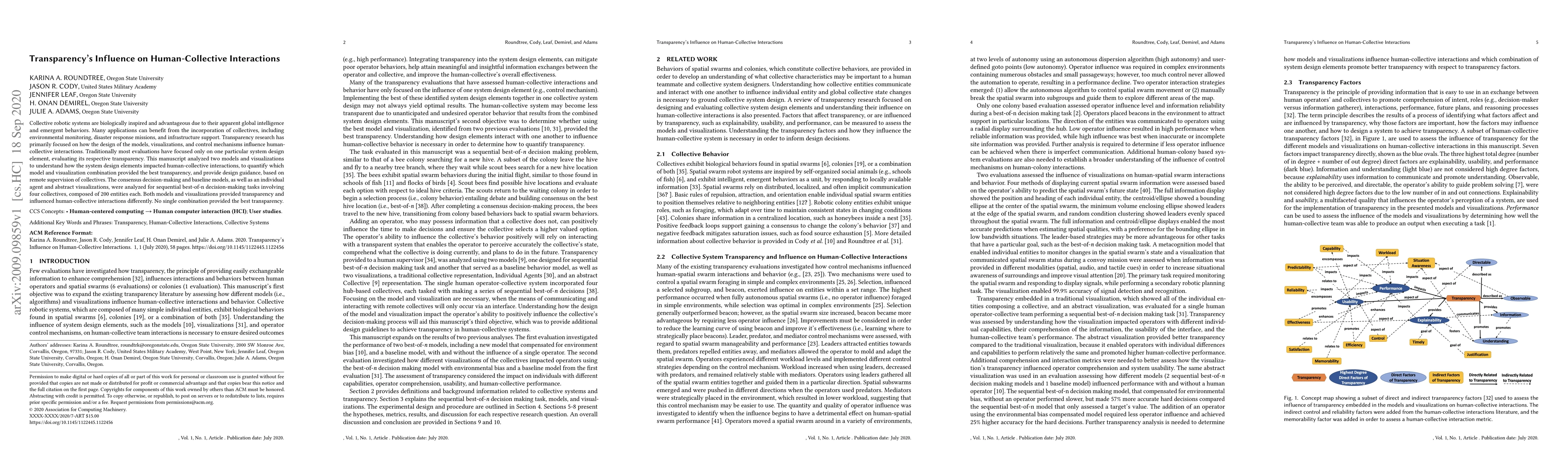 Collective robotic systems are biologically inspired and advantageous due to their apparent global intelligence and emergent behaviors. Many applications can benefit from the incorporation of collectives, including environmental monitoring, disaster response missions, and infrastructure support. Transparency research has primarily focused on how the design of the models, visualizations, and control mechanisms influence human-collective interactions. Traditionally most evaluations have focused only on one particular system design element, evaluating its respective transparency. This manuscript analyzed two models and visualizations to understand how the system design elements impacted human-collective interactions, to quantify which model and visualization combination provided the best transparency, and provide design guidance, based on remote supervision of collectives. The consensus decision-making and baseline models, as well as an individual agent and abstract visualizations, were analyzed for sequential best-of-n decision-making tasks involving four collectives, composed of 200 entities each. Both models and visualizations provided transparency and influenced human-collective interactions differently. No single combination provided the best transparency.