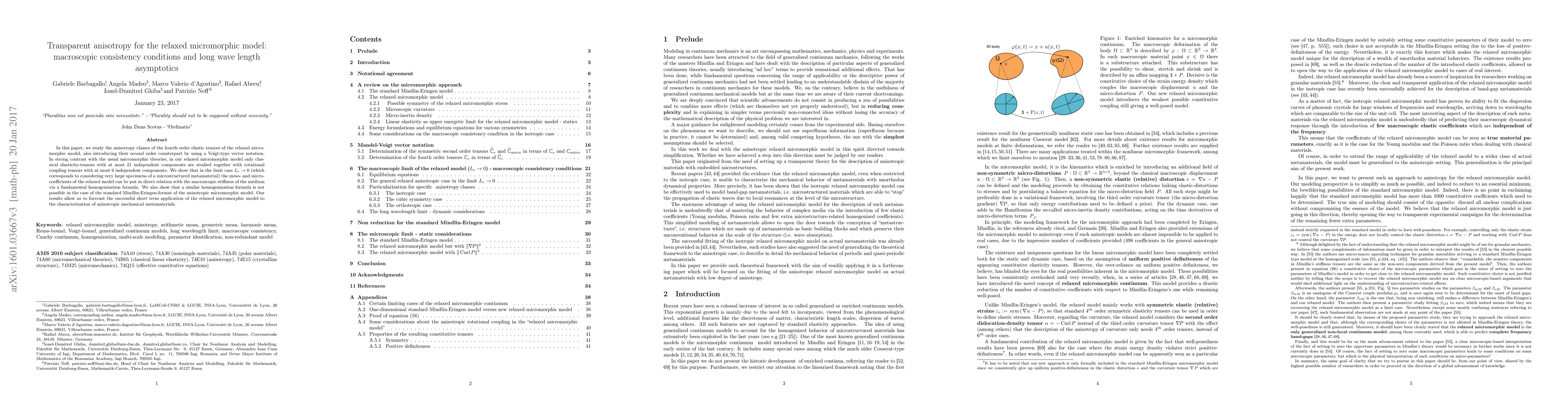 In this paper, we study the anisotropy classes of the fourth order elastic tensors of the relaxed micromorphic model, also introducing their second order counterpart by using a Voigt-type vector notation. In strong contrast with the usual micromorphic theories, in our relaxed micromorphic model only classical elasticity-tensors with at most 21 independent components are studied together with rotational coupling tensors with at most 6 independent components. We show that in the limit case $L_c\rightarrow 0$ (which corresponds to considering very large specimens of a microstructured metamaterial the meso- and micro-coefficients of the relaxed model can be put in direct relation with the macroscopic stiffness of the medium via a fundamental homogenization formula. We also show that a similar homogenization formula is not possible in the case of the standard Mindlin-Eringen-format of the anisotropic micromorphic model. Our results allow us to forecast the successful short term application of the relaxed micromorphic model to the characterization of anisotropic mechanical metamaterials.