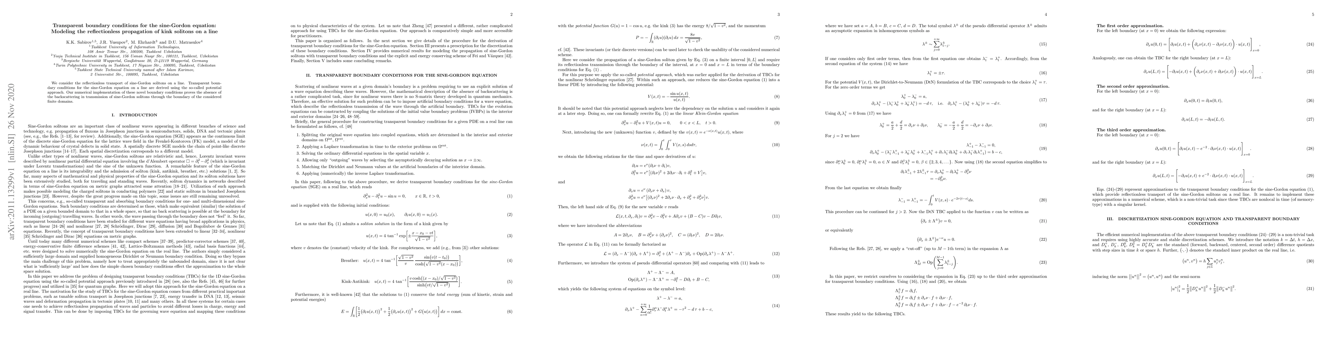 This paper develops transparent boundary conditions for the sine-Gordon equation to model the reflectionless propagation of kink solitons on a line. Numerical simulations confirm the absence of backscattering when sine-Gordon solitons traverse these boundaries.