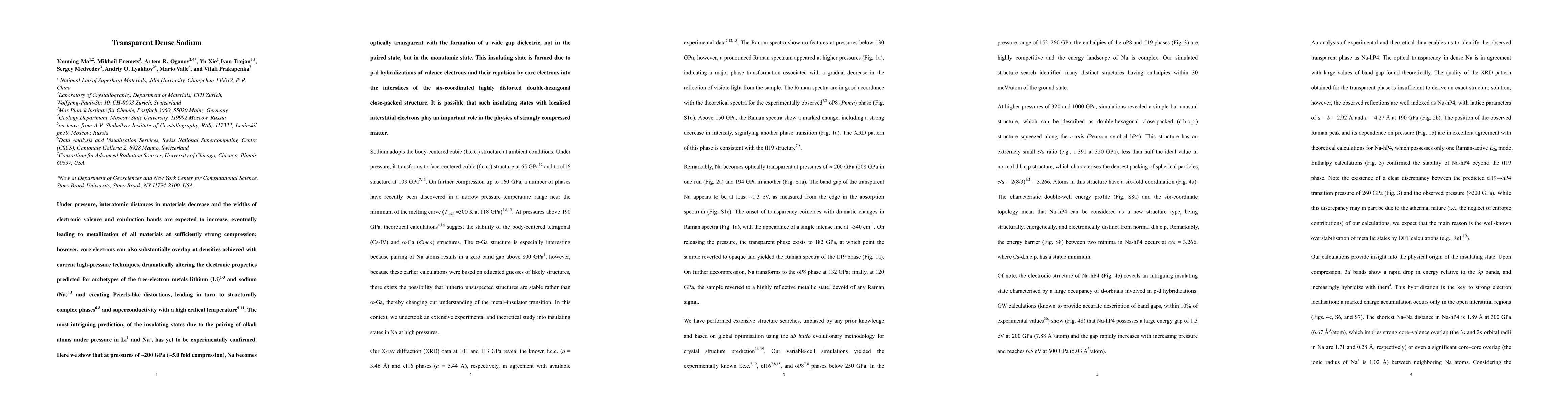 Under pressure, metals exhibit increasingly shorter interatomic distances. Intuitively, this response is expected to be accompanied by an increase in the widths of the valence and conduction bands and hence a more pronounced free-electron-like behaviour. But at the densities that can now be achieved experimentally, compression can be so substantial that core electrons overlap. This effect dramatically alters electronic properties from those typically associated with simple free-electron metals such as lithium and sodium, leading in turn to structurally complex phases and superconductivity with a high critical temperature. But the most intriguing prediction - that the seemingly simple metals Li and Na will transform under pressure into insulating states, owing to pairing of alkali atoms - has yet to be experimentally confirmed. Here we report experimental observations of a pressure-induced transformation of Na into an optically transparent phase at 200 GPa (corresponding to 5.0-fold compression). Experimental and computational data identify the new phase as a wide bandgap dielectric with a six-coordinated, highly distorted double-hexagonal close-packed structure. We attribute the emergence of this dense insulating state not to atom pairing, but to p-d hybridizations of valence electrons and their repulsion by core electrons into the lattice interstices. We expect that such insulating states may also form in other elements and compounds when compression is sufficiently strong that atomic cores start to overlap strongly.