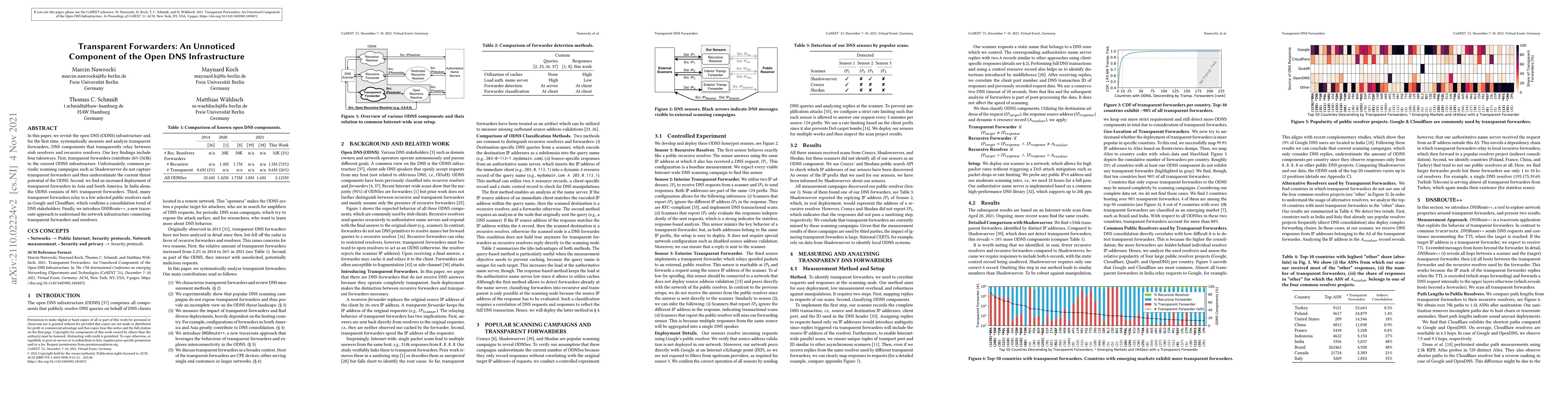 In this paper, we revisit the open DNS (ODNS) infrastructure and, for the first time, systematically measure and analyze transparent forwarders, DNS components that transparently relay between stub resolvers and recursive resolvers. Our key findings include four takeaways. First, transparent forwarders contribute 26% (563k) to the current ODNS infrastructure. Unfortunately, common periodic scanning campaigns such as Shadowserver do not capture transparent forwarders and thus underestimate the current threat potential of the ODNS. Second, we find an increased deployment of transparent forwarders in Asia and South America. In India alone, the ODNS consists of 80% transparent forwarders. Third, many transparent forwarders relay to a few selected public resolvers such as Google and Cloudflare, which confirms a consolidation trend of DNS stakeholders. Finally, we introduce DNSRoute++, a new traceroute approach to understand the network infrastructure connecting transparent forwarders and resolvers.
