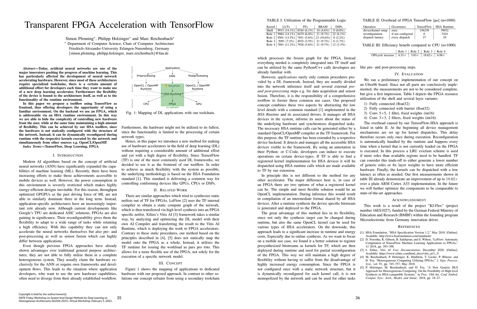 This paper proposes a transparent FPGA acceleration framework using TensorFlow for the frontend and an FPGA with an HSA runtime environment for the backend, aiming to simplify the use of deep learning accelerators while maintaining high flexibility and dynamic reconfiguration.