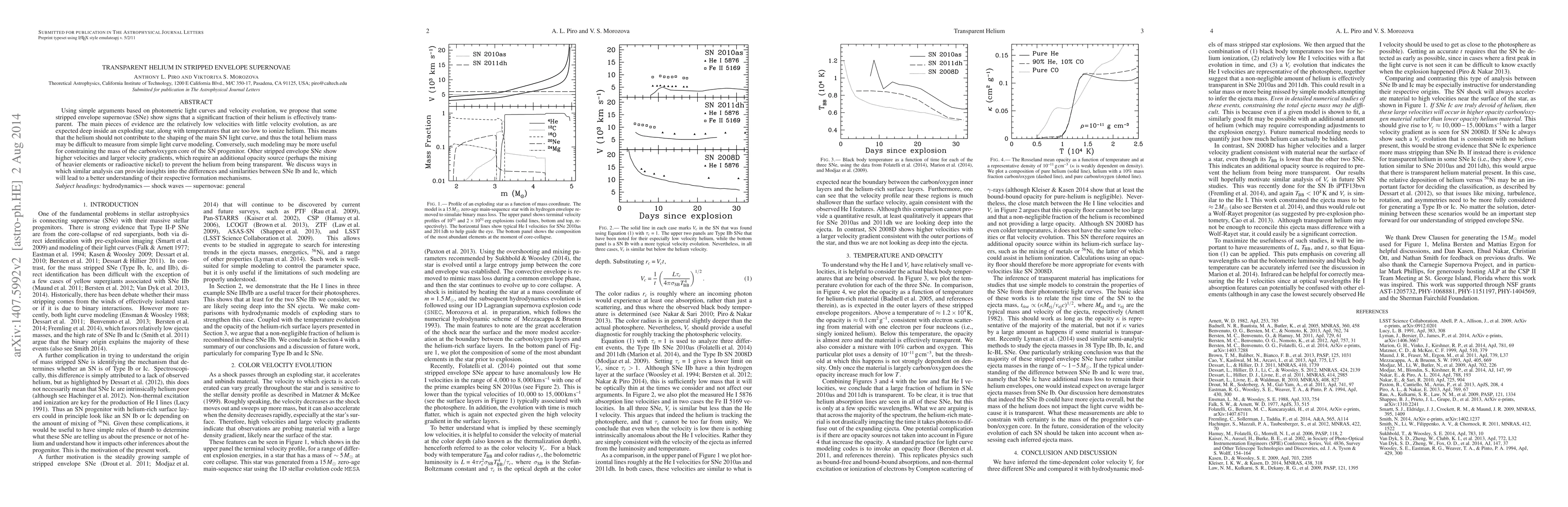 This paper proposes that in some stripped envelope supernovae, a significant fraction of helium is effectively transparent, inferred from low velocities and low temperatures that prevent helium ionization. This transparency complicates the measurement of helium mass from light curve modeling, suggesting a focus on constraining the carbon/oxygen core mass instead.