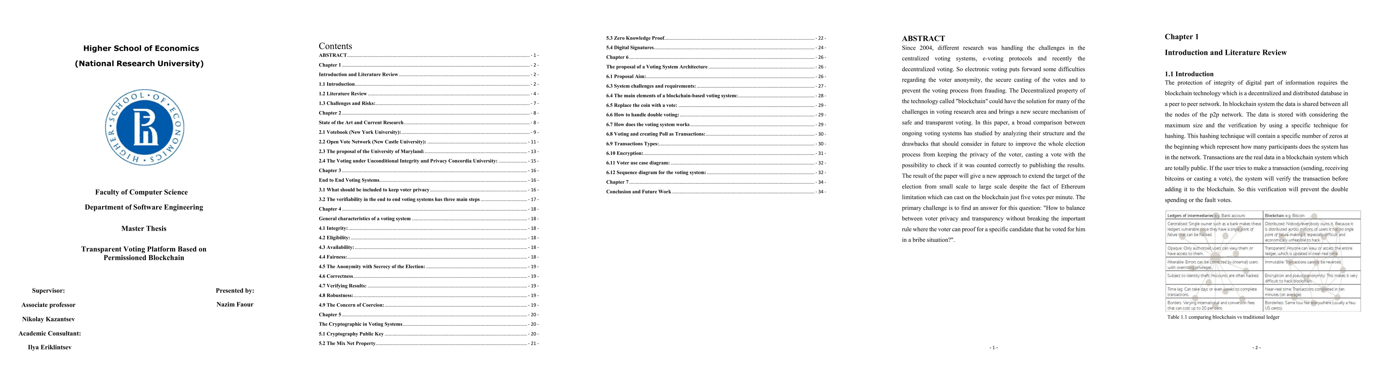 This paper explores a transparent voting platform based on permissioned blockchain to address challenges in centralized and decentralized voting systems, focusing on voter anonymity, secure vote casting, and fraud prevention. It proposes a new approach to extend voting from small to large scales while balancing voter privacy and transparency.