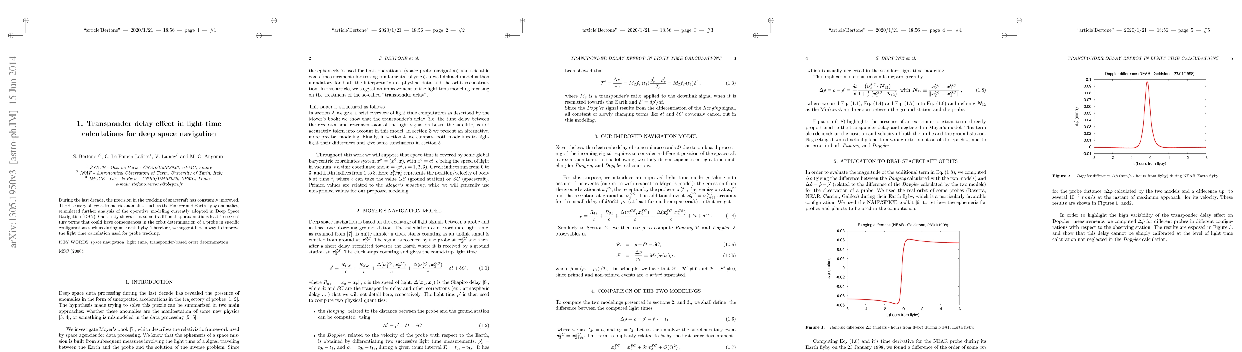 During the last decade, the precision in the tracking of spacecraft has constantly improved. The discovery of few astrometric anomalies, such as the Pioneer and Earth flyby anomalies, stimulated further analysis of the operative modeling currently adopted in Deep Space Navigation (DSN). Our study shows that some traditional approximations lead to neglect tiny terms that could have consequences in the orbit determination of a probe in specific configurations such as during an Earth flyby. Therefore, we suggest here a way to improve the light time calculation used for probe tracking.