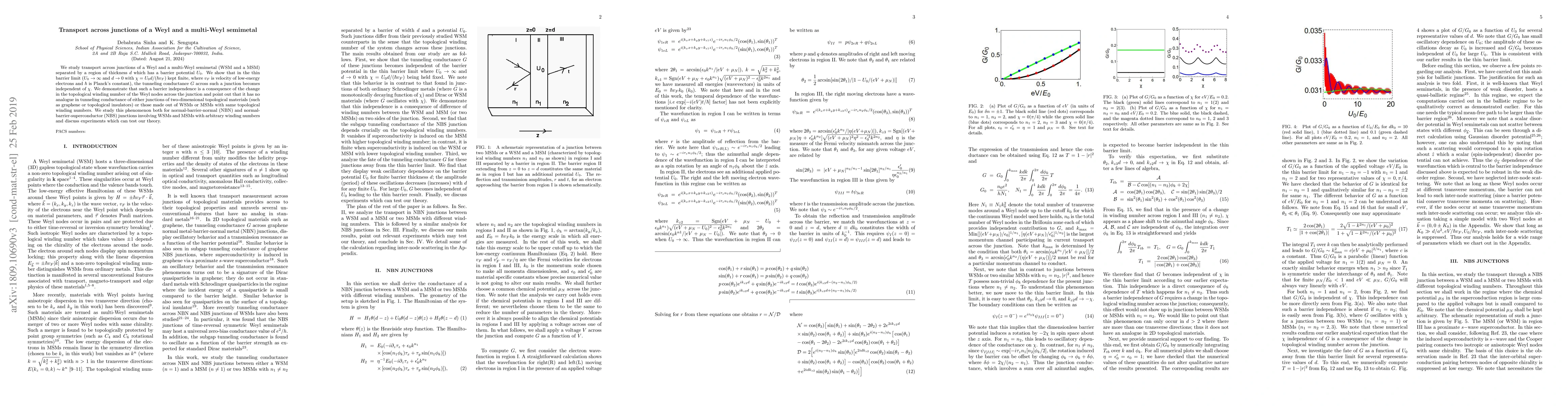 We study transport across junctions of a Weyl and a multi-Weyl semimetal (WSM and a MSM) separated by a region of thickness $d$ which has a barrier potential $U_0$. We show that in the thin barrier limit ($U_0 \to \infty$ and $d \to 0$ with $\chi=U_0 d/(\hbar v_F)$ kept finite, where $v_F$ is velocity of low-energy electrons and $\hbar$ is Planck's constant), the tunneling conductance $G$ across such a junction becomes independent of $\chi$. We demonstrate that such a barrier independence is a consequence of the change in the topological winding number of the Weyl nodes across the junction and point out that it has no analogue in tunneling conductance of either junctions of two-dimensional topological materials (such as graphene or topological insulators) or those made out of WSMs or MSMs with same topological winding numbers. We study this phenomenon both for normal-barrier-normal (NBN) and normal-barrier-superconductor (NBS) junctions involving WSMs and MSMs with arbitrary winding numbers and discuss experiments which can test our theory.