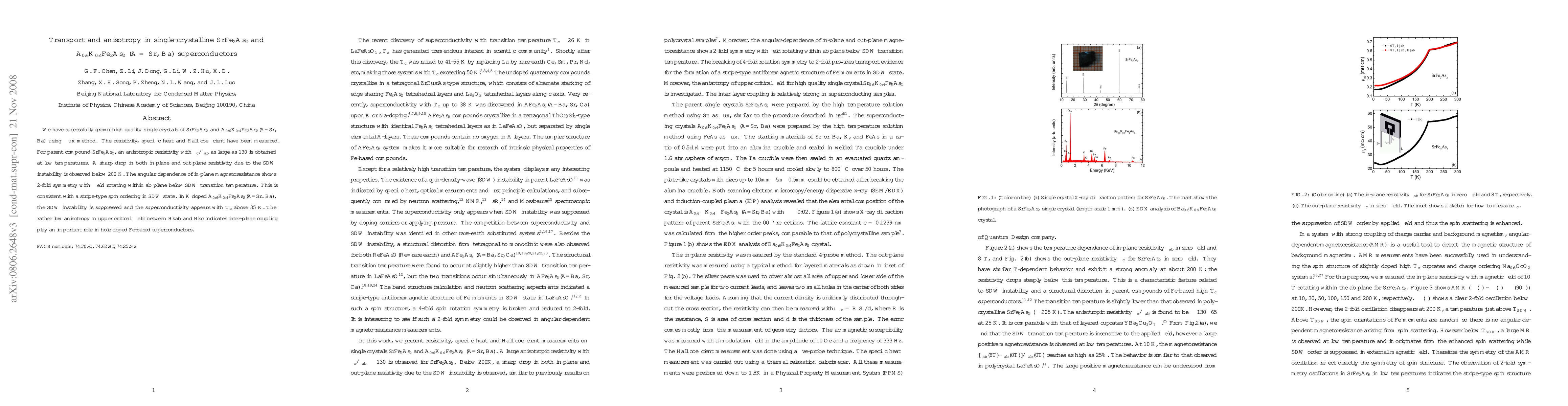 This research investigates the transport properties of high-quality single crystals of SrFe$_2$As$_2$ and K-doped A$_{0.6}$K$_{0.4}$Fe$_2$As$_2$ (A=Sr, Ba). SrFe$_2$As$_2$ exhibits significant anisotropic resistivity and a stripe-type spin ordering below 200 K, while K doping induces superconductivity with T$_c$ above 35 K and demonstrates inter-plane coupling in the upper critical field.