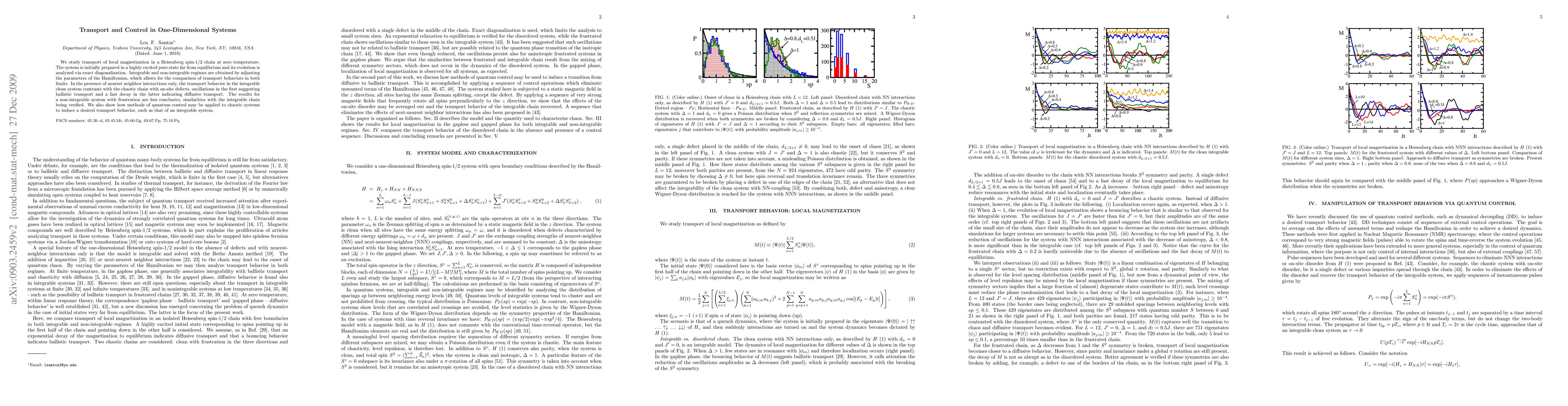 This paper investigates the transport of local magnetization in a Heisenberg spin-1/2 chain, comparing integrable and non-integrable regimes. It reveals ballistic transport in integrable systems and diffusive transport in chaotic ones, while also exploring the application of quantum control methods to induce integrable-like transport in chaotic systems.
