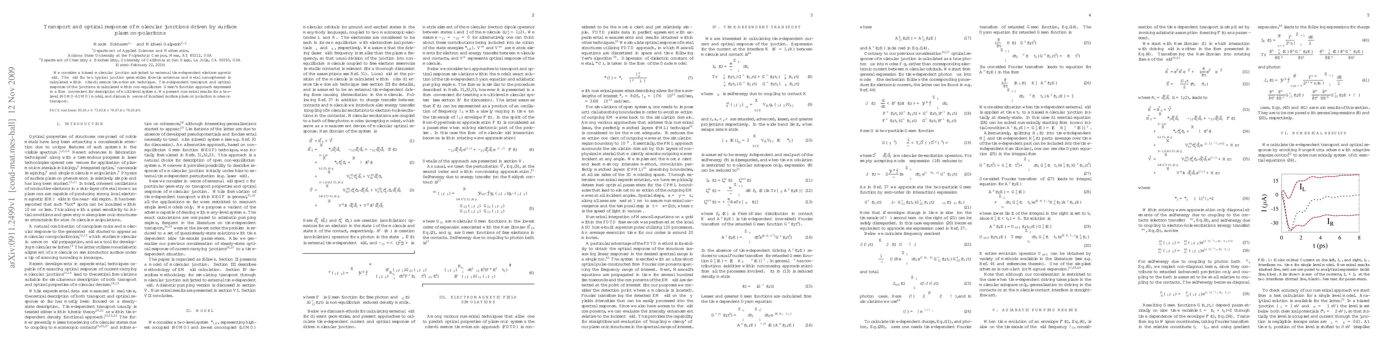 We consider a biased molecular junction subjected to external time-dependent electromagnetic field. The field for two typical junction geometries (bowtie antennas and metal nanospheres) is calculated within finite-difference time-domain technique. Time-dependent transport and optical response of the junctions is calculated within non-equilibrium Green's function approach expressed in a form convenient for description of multi-level systems. We present numerical results for a two-level (HOMO-LUMO) model, and discuss influence of localized surface plasmon polariton modes on transport.
