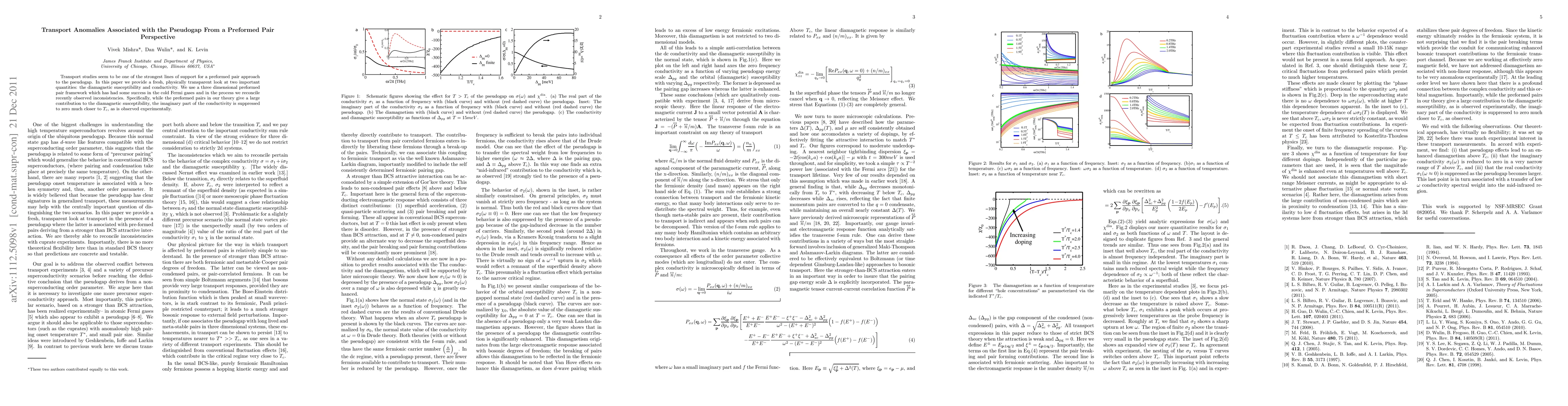 Transport studies seem to be one of the strongest lines of support for a preformed pair approach to the pseudogap. In this paper we provide a fresh, physically transparent look at two important quantities: the diamagnetic susceptibility and conductivity. We use a three dimensional preformed pair framework which has had some success in the cold Fermi gases and in the process we reconcile recently observed inconsistencies. Specifically, while the preformed pairs in our theory give a large contribution to the diamagnetic susceptibility, the imaginary part of the conductivity is suppressed to zero much closer to $T_c$, as is observed experimentally.