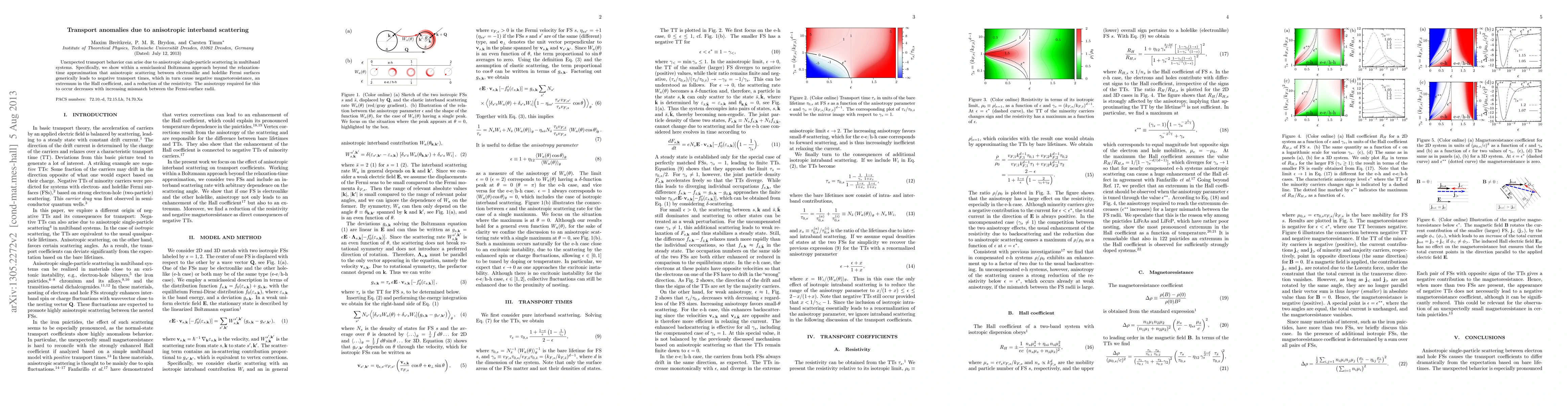 Research shows that anisotropic scattering in multiband systems can cause negative transport times, leading to negative magnetoresistance and reduced resistivity. This effect decreases as the mismatch between Fermi-surface radii increases.