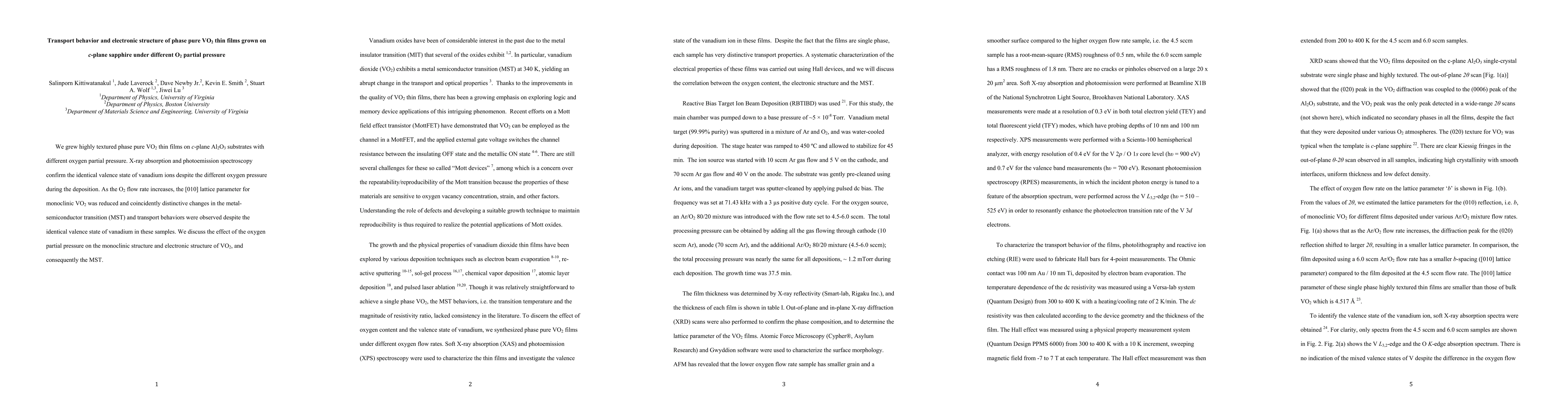 This study investigates the impact of varying oxygen partial pressure on the growth and electronic structure of phase pure VO2 thin films on c-plane sapphire, revealing identical vanadium valence states but distinct changes in lattice parameters, metal-semiconductor transition, and transport behaviors with increasing oxygen flow. The findings highlight the influence of oxygen partial pressure on VO2's monoclinic structure and electronic properties.