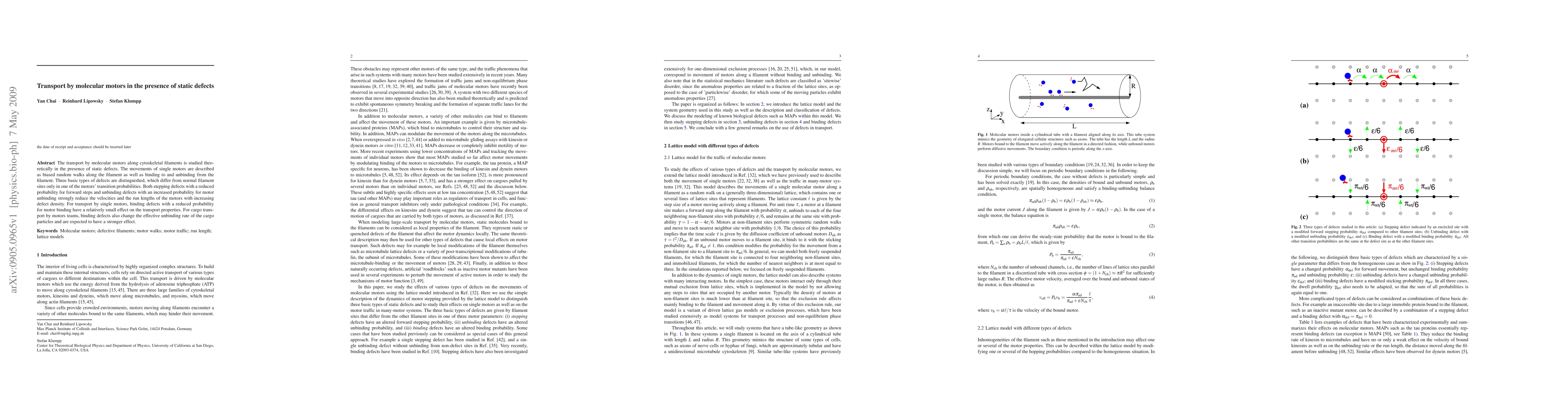 This paper theoretically investigates how molecular motors navigate along cytoskeletal filaments in the presence of static defects, finding that defects significantly reduce motor velocities and run lengths, with varying impacts depending on the type of defect and whether single or multiple motors are involved.