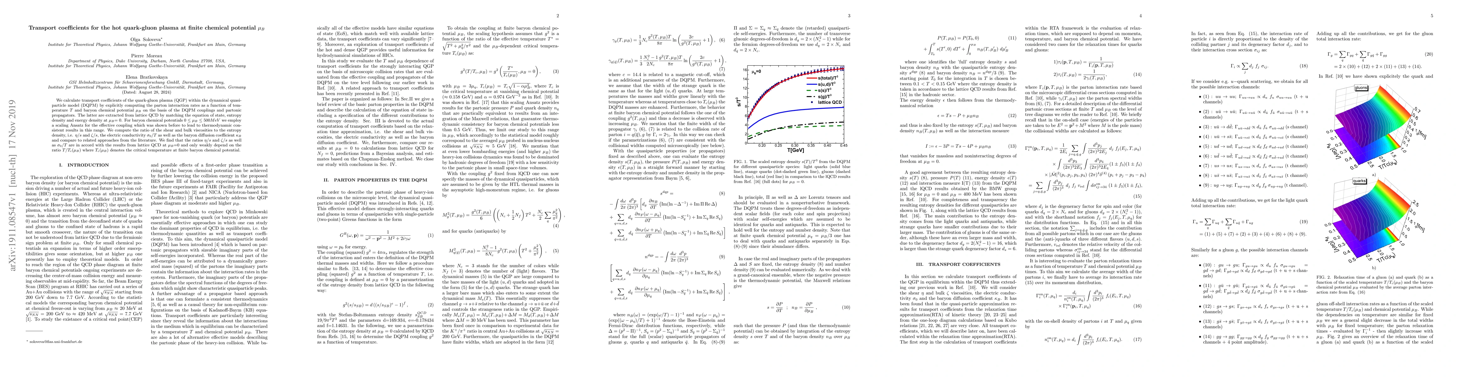 This paper calculates transport coefficients for the hot quark-gluon plasma (QGP) using the dynamical quasiparticle model (DQPM) at finite baryon chemical potential $\mu_B$. It compares the ratios $\eta/s$, $\zeta/s$, $\sigma_0/T$, and $\kappa_B$ to lattice QCD results and finds weak dependence on $T/T_c(\mu_B)$.