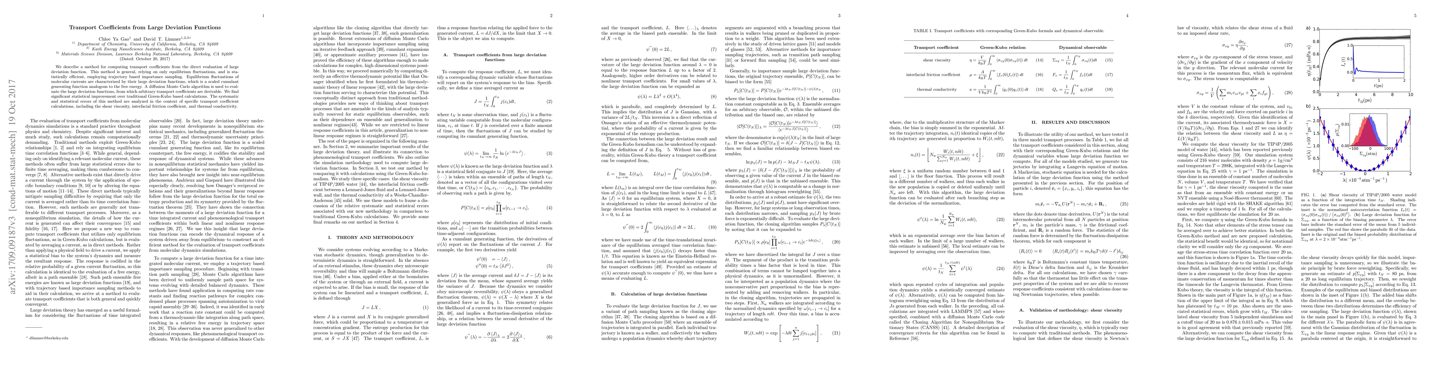 This paper presents a novel method for calculating transport coefficients using large deviation functions derived from equilibrium fluctuations, leveraging trajectory-based importance sampling for efficiency. This approach shows significant statistical improvements over traditional Green-Kubo methods, as demonstrated through calculations of shear viscosity, interfacial friction, and thermal conductivity.