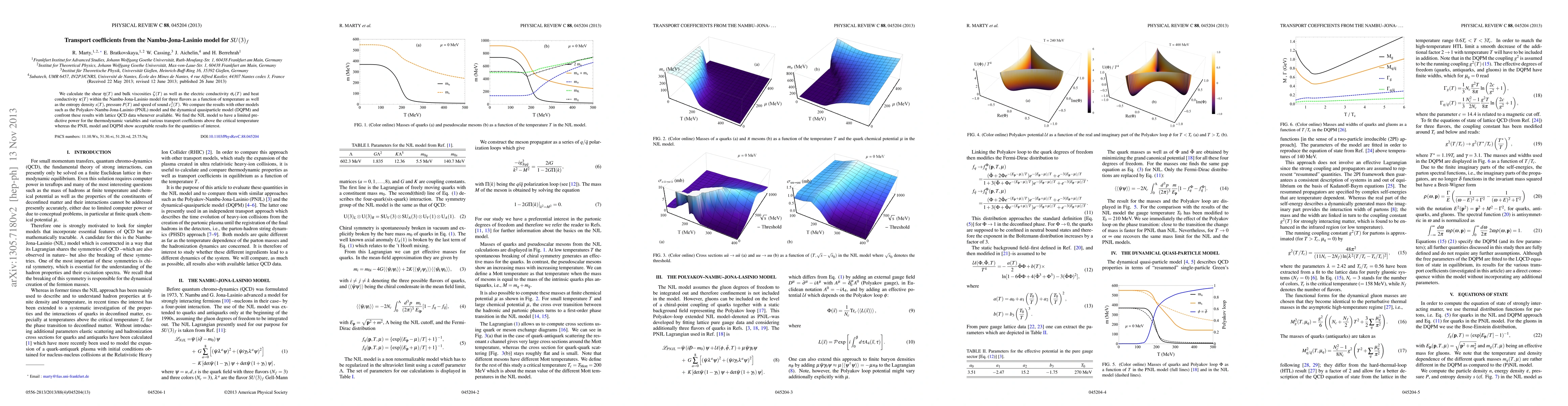 We calculate the shear $\eta(T)$ and bulk viscosities $\zeta(T)$ as well as the electric conductivity $\sigma_e(T)$ and heat conductivity $\kappa(T)$ within the Nambu-Jona-Lasinio model for 3 flavors as a function of temperature as well as the entropy density $s(T)$, pressure $P(T)$ and speed of sound $c_s^2(T)$. We compare the results with other models such as the Polyakov-Nambu-Jona-Lasinio (PNJL) model and the dynamical quasiparticle model (DQPM) and confront these results with lattice QCD data whenever available. We find the NJL model to have a limited predictive power for the thermodynamic variables and various transport coefficients above the critical temperature whereas the PNJL model and DQPM show acceptable results for the quantities of interest.