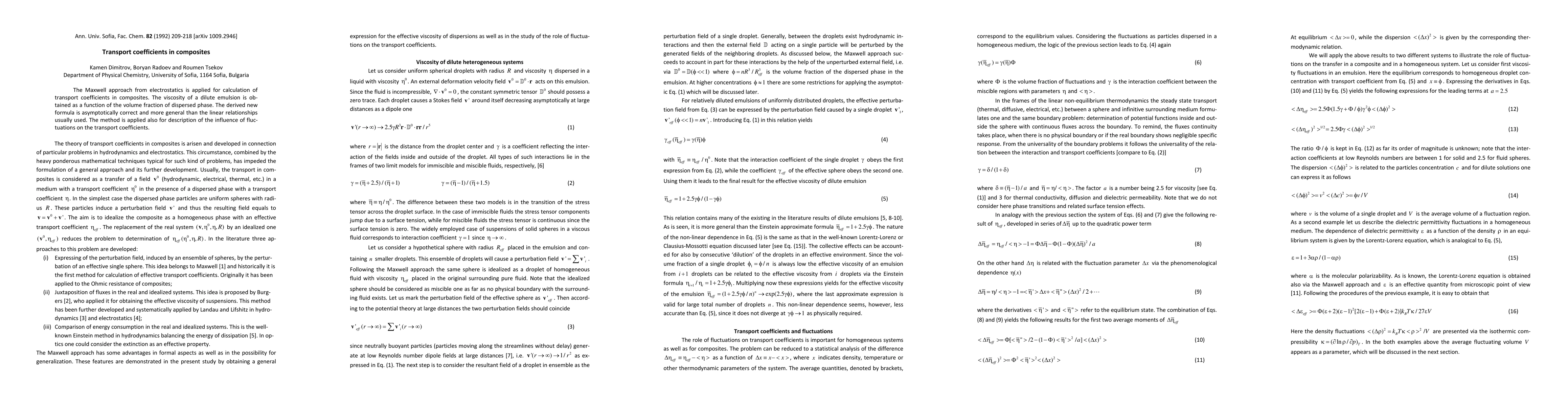 Researchers applied the Maxwell approach to calculate transport coefficients in composites, deriving a new formula for viscosity that is more general than existing linear relationships, and showed its applicability to describe fluctuations' influence on transport coefficients.
