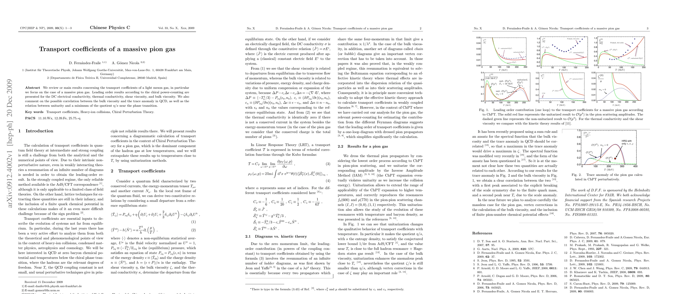 This paper reviews leading order transport coefficients for a massive pion gas, including electrical conductivity, thermal conductivity, shear viscosity, and bulk viscosity, using chiral power-counting. It also discusses the correlation between bulk viscosity and the trace anomaly in QCD, and the connection between unitarity and the minimum of $\eta/s$ near the phase transition.