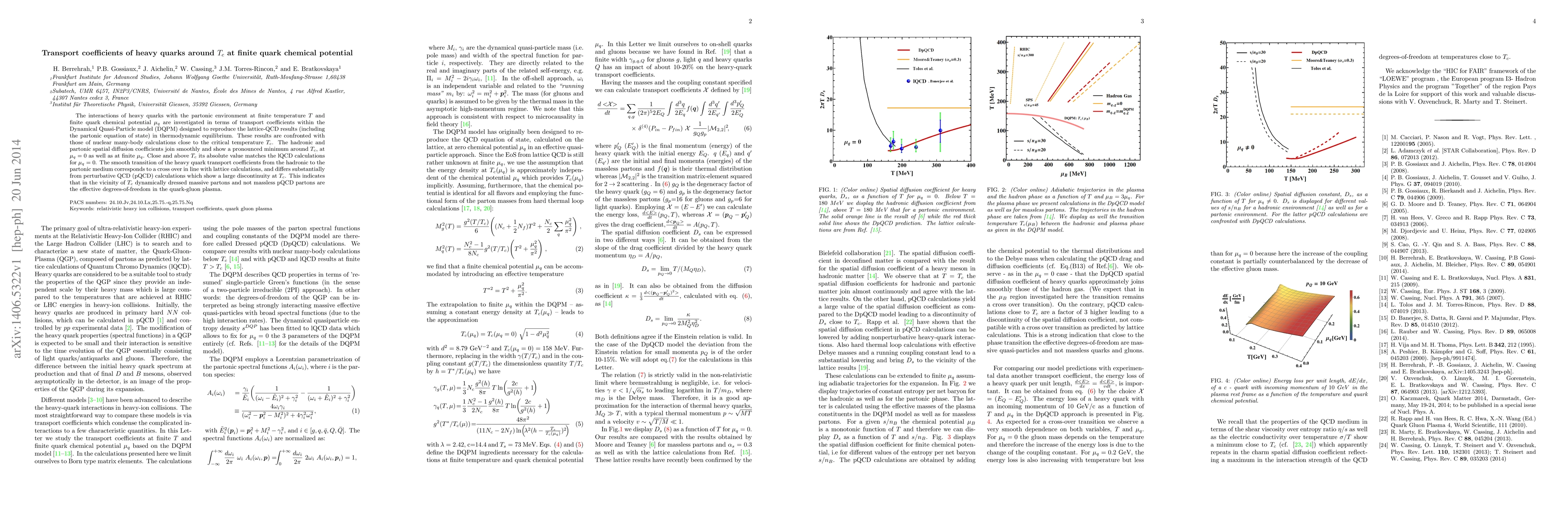 This paper investigates heavy quark transport coefficients at finite temperature and quark chemical potential using the Dynamical Quasi-Particle model, revealing a smooth crossover near the critical temperature $T_c$ that aligns with lattice QCD results, contrasting with perturbative QCD predictions. The study highlights dynamically dressed partons as the effective degrees of freedom around $T_c$.