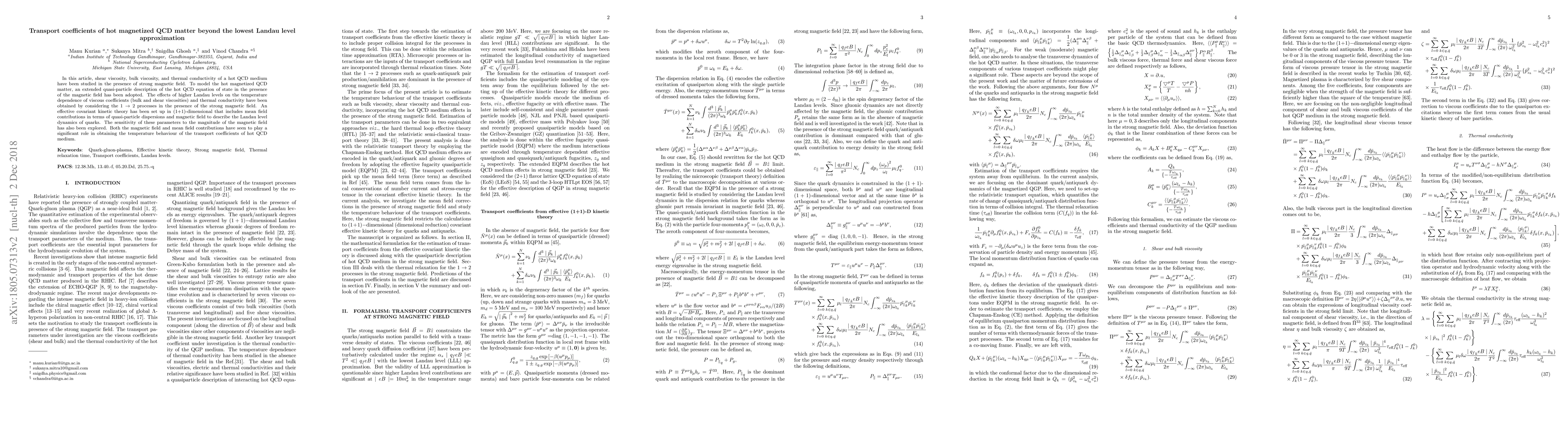 This paper investigates the transport coefficients of hot QCD matter under strong magnetic fields, beyond the lowest Landau level approximation. It employs an extended quasi-particle model and effective covariant kinetic theory to explore the effects of higher Landau levels on shear viscosity, bulk viscosity, and thermal conductivity, revealing significant roles of magnetic and mean field contributions.