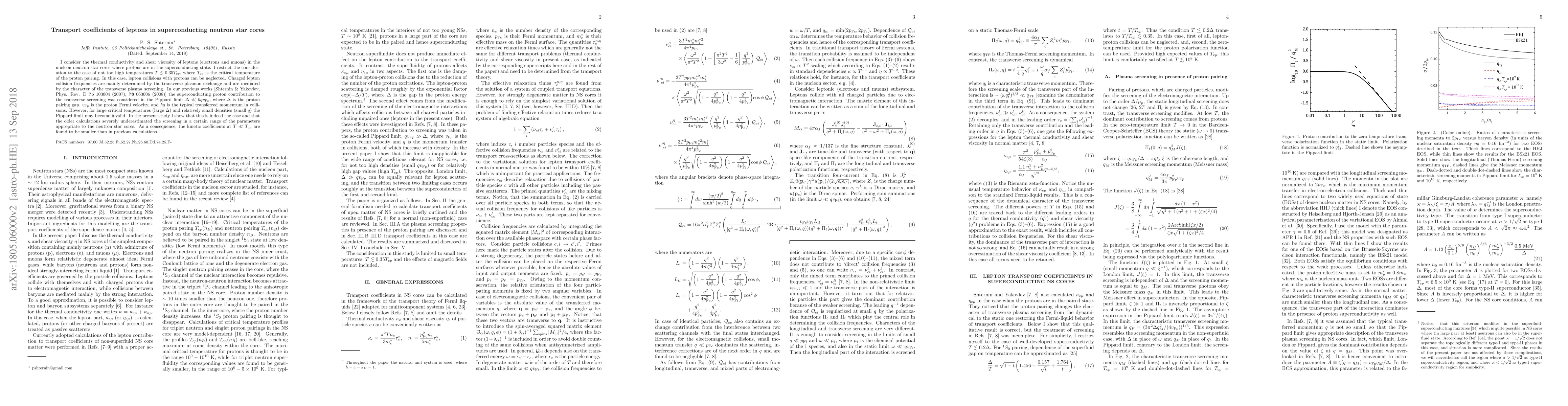 This study calculates the transport coefficients of leptons in superconducting neutron star cores, finding that kinetic coefficients are smaller than previous calculations due to improved screening at certain temperatures and densities.