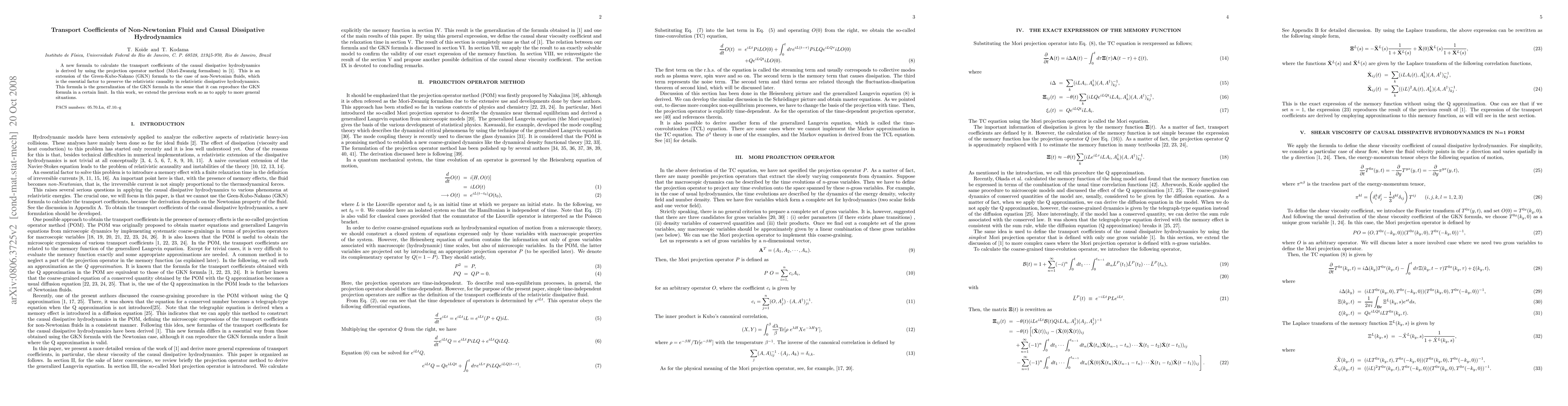 The research derives a new formula for transport coefficients of non-Newtonian fluids using the projection operator method (Mori-Zwanzig formalism) to extend the Green-Kubo-Nakano (GKN) formula, ensuring relativistic causality in dissipative hydrodynamics.