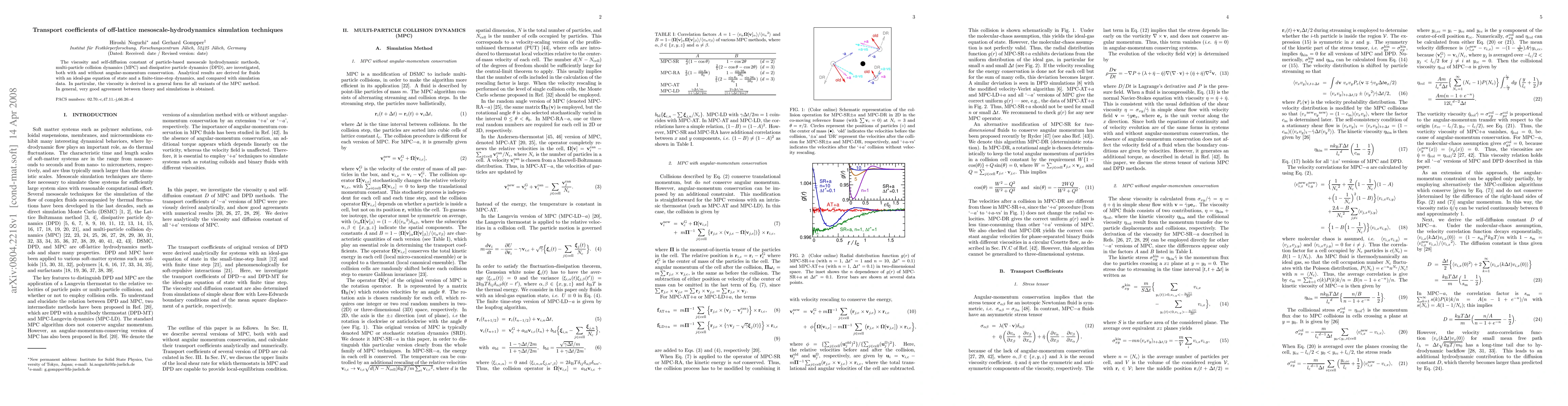 This paper investigates the viscosity and self-diffusion constants of mesoscale hydrodynamic methods, MPC and DPD, comparing analytical results with simulation data. It finds very good agreement between theory and simulations, especially for the viscosity derived in a general form for MPC methods.