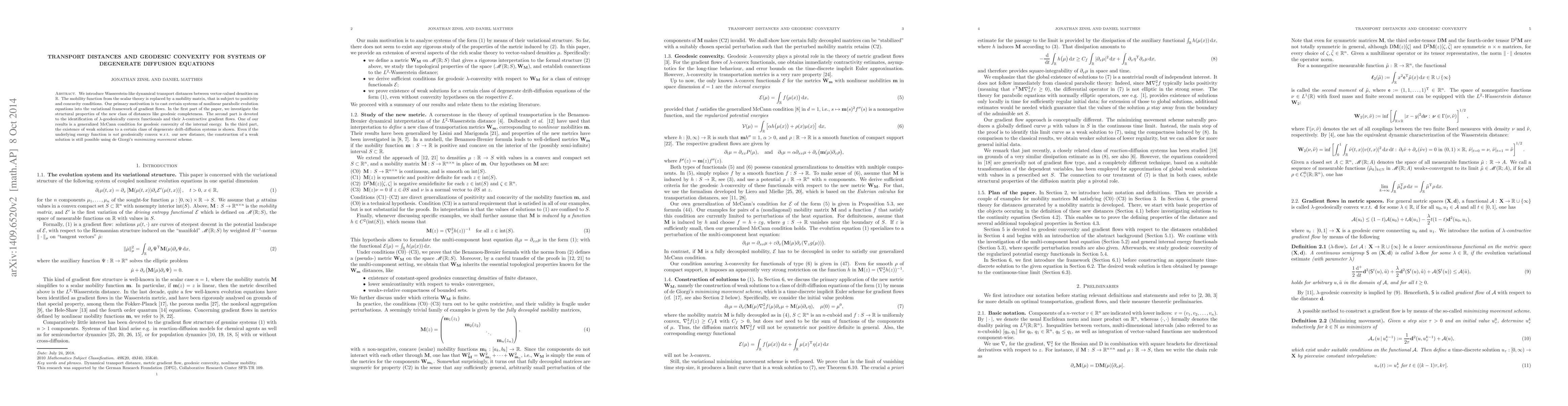 Researchers introduce a new distance metric for vector-valued densities to study systems of degenerate diffusion equations, enabling the identification of geodesically convex functionals and the existence of weak solutions.