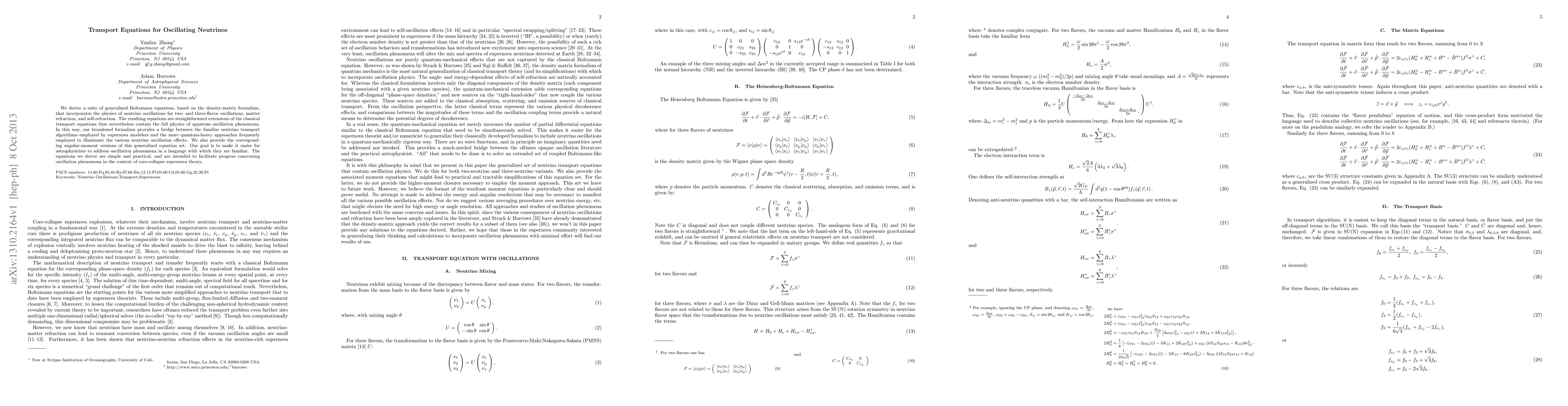 This paper derives generalized Boltzmann transport equations for oscillating neutrinos, incorporating quantum oscillation phenomena and matter effects. The aim is to bridge classical transport algorithms with quantum-heavy approaches, facilitating their use in core-collapse supernova theory.