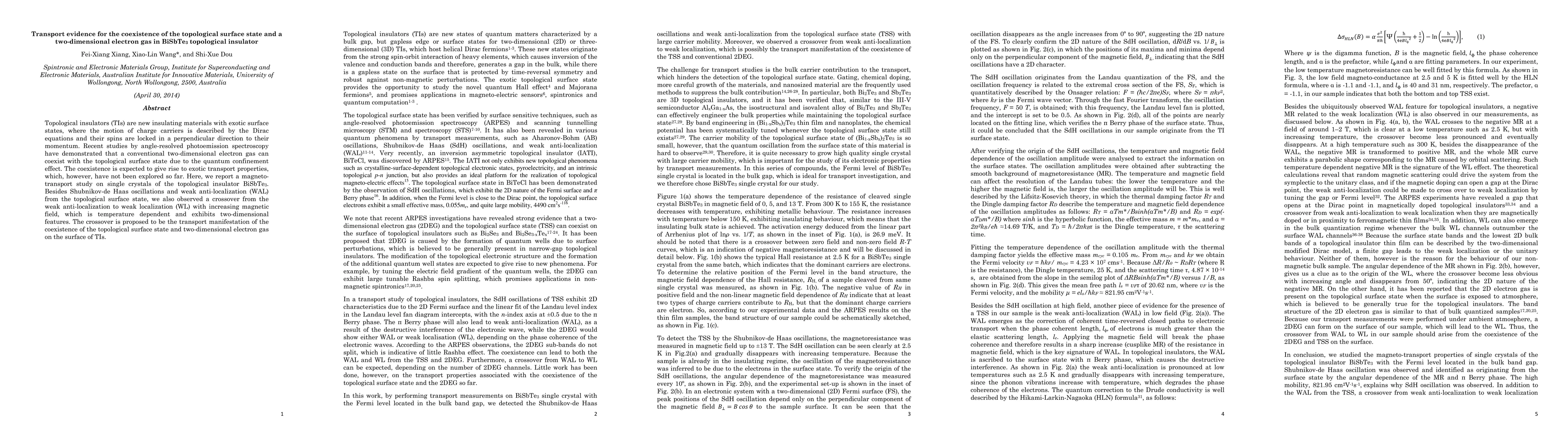 Topological insulators (TIs) are new insulating materials with exotic surface states, where the motion of charge carriers is described by the Dirac equations and their spins are locked in a perpendicular direction to their momentum. Recent studies by angle-resolved photoemission spectroscopy have demonstrated that a conventional two-dimensional electron gas can coexist with the topological surface state due to the quantum confinement effect. The coexistence is expected to give rise to exotic transport properties, which, however, have not been explored so far. Here, we report a magneto-transport study on single crystals of the topological insulator BiSbTe3. Besides Shubnikov-de Haas oscillations and weak anti-localization (WAL) from the topological surface state, we also observed a crossover from the weak anti-localization to weak localization (WL) with increasing magnetic field, which is temperature dependent and exhibits two-dimensional features. The crossover is proposed to be the transport manifestation of the coexistence of the topological surface state and two-dimensional electron gas on the surface of TIs.