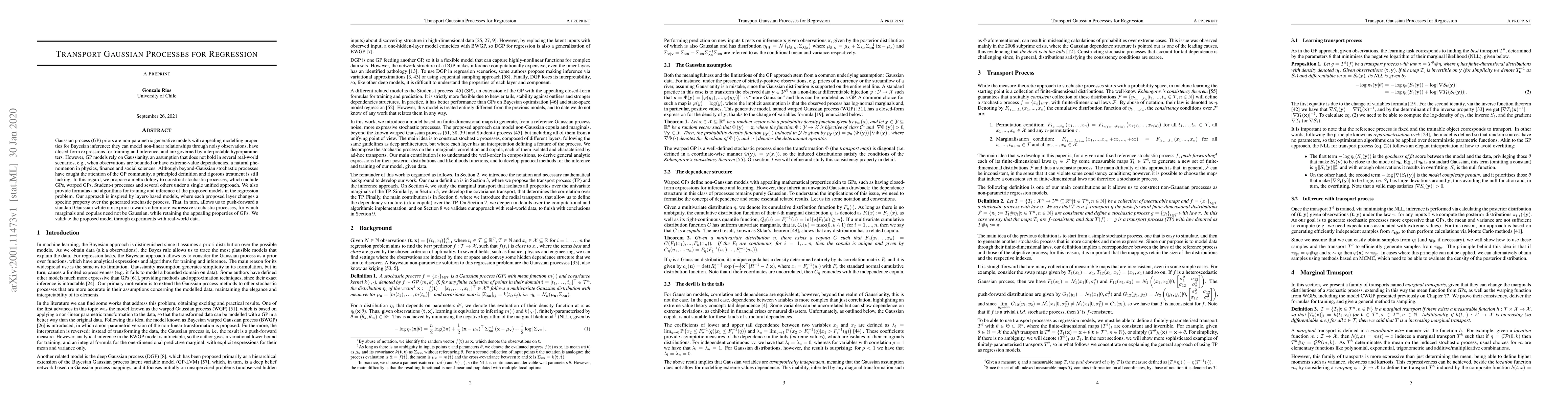This paper proposes a methodology to construct transport Gaussian processes for regression, enabling the transformation of Gaussian process priors into a variety of beyond-Gaussian stochastic processes. The approach retains the desirable properties of Gaussian processes while accommodating non-Gaussian dependencies, validated through experiments on real-world data.