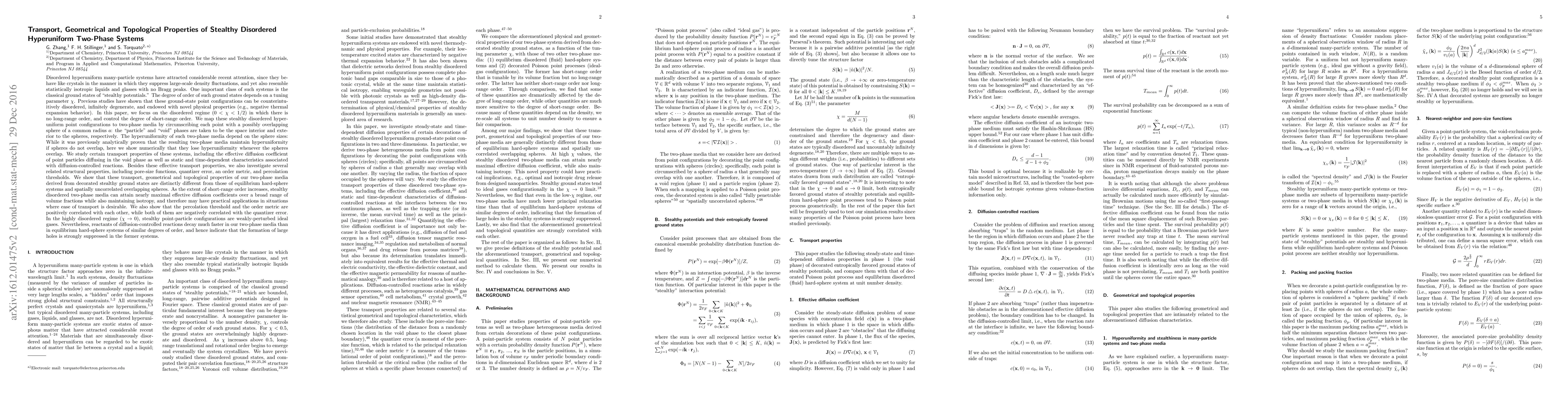 Disordered hyperuniform many-particle systems have attracted considerable recent attention. One important class of such systems is the classical ground states of "stealthy potentials." The degree of order of such ground states depends on a tuning parameter. Previous studies have shown that these ground-state point configurations can be counterintuitively disordered, infinitely degenerate, and endowed with novel physical properties (e.g., negative thermal expansion behavior). In this paper, we focus on the disordered regime in which there is no long-range order, and control the degree of short-range order. We map these stealthy disordered hyperuniform point configurations to two-phase media by circumscribing each point with a possibly overlapping sphere of a common radius $a$: the "particle" and "void" phases are taken to be the space interior and exterior to the spheres, respectively. We study certain transport properties of these systems, including the effective diffusion coefficient of point particles diffusing in the void phase as well as static and time-dependent characteristics associated with diffusion-controlled reactions. Besides these effective transport properties, we also investigate several related structural properties, including pore-size functions, quantizer error, an order metric, and percolation threshold. We show that these transport, geometrical and topological properties of our two-phase media derived from decorated stealthy ground states are distinctly different from those of equilibrium hard-sphere systems and spatially uncorrelated overlapping spheres.
