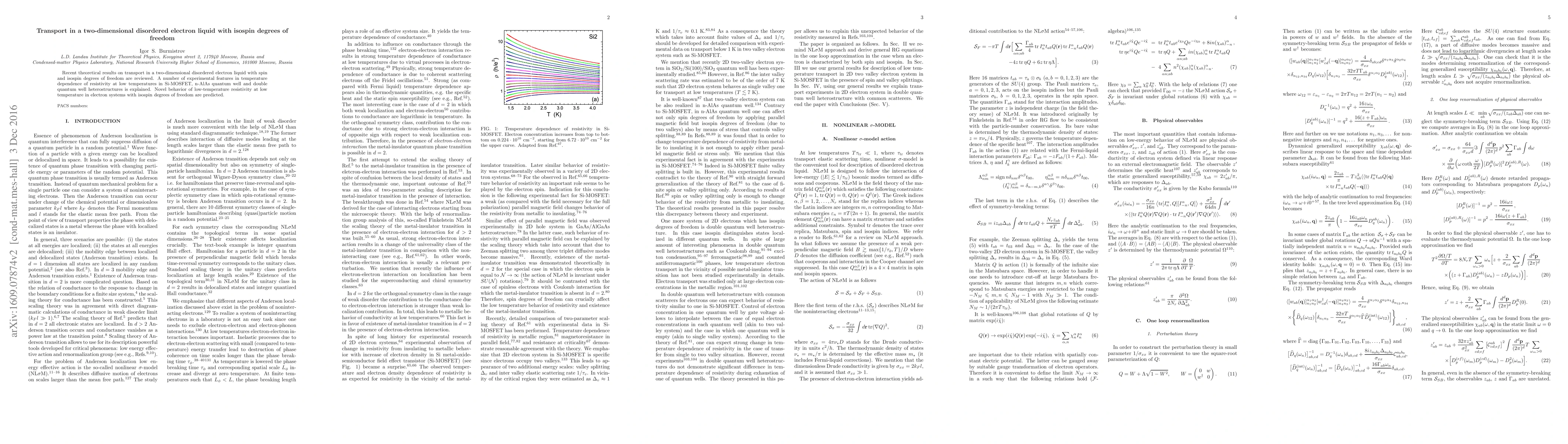 This paper reviews theoretical insights into transport in a two-dimensional disordered electron liquid with spin and isospin degrees of freedom, explaining experimental observations in various materials and predicting novel low-temperature resistivity behaviors in electron systems with isospin.